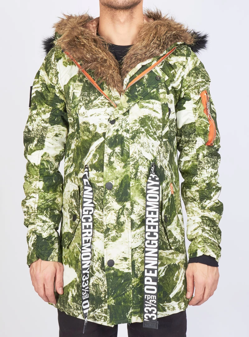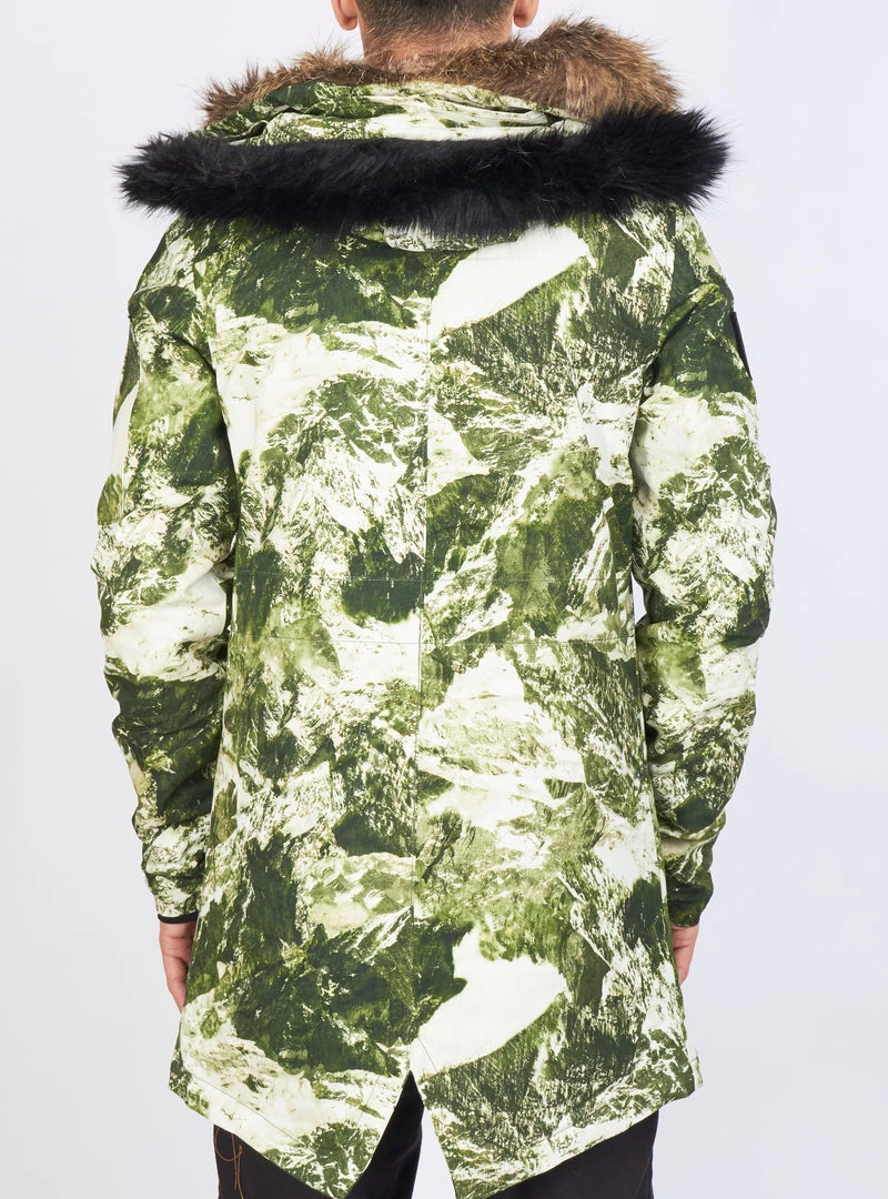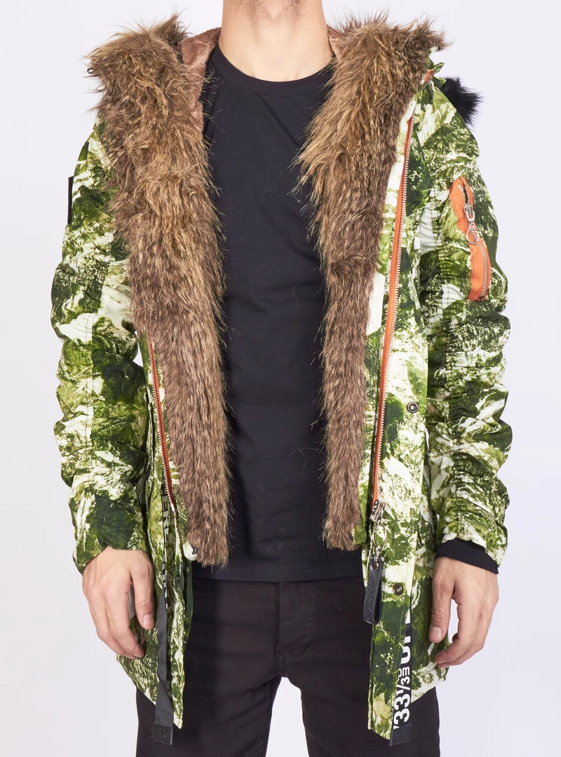 This coat features a fur lined design underneath a thick polyester exterior. It is covered in various design work and is built to be a long lasting winter coat. Each style fits true to size.