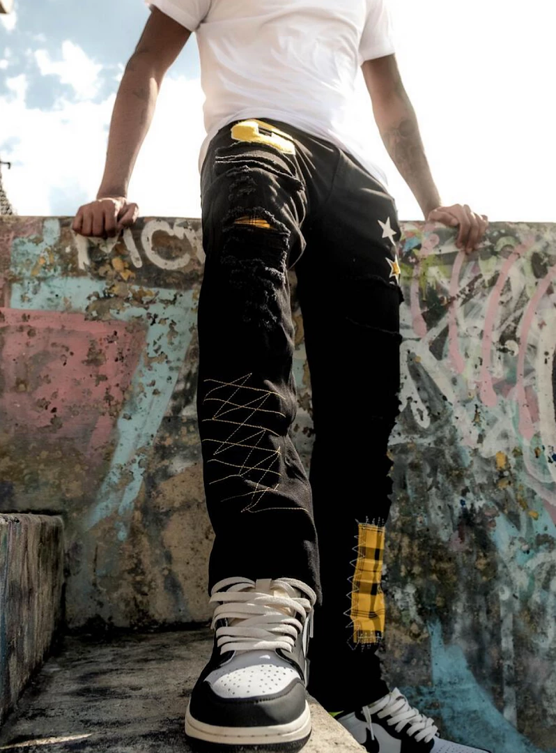 This jeans are high quality with a unique designs of colored brush strokes. Each style fits true to size.
