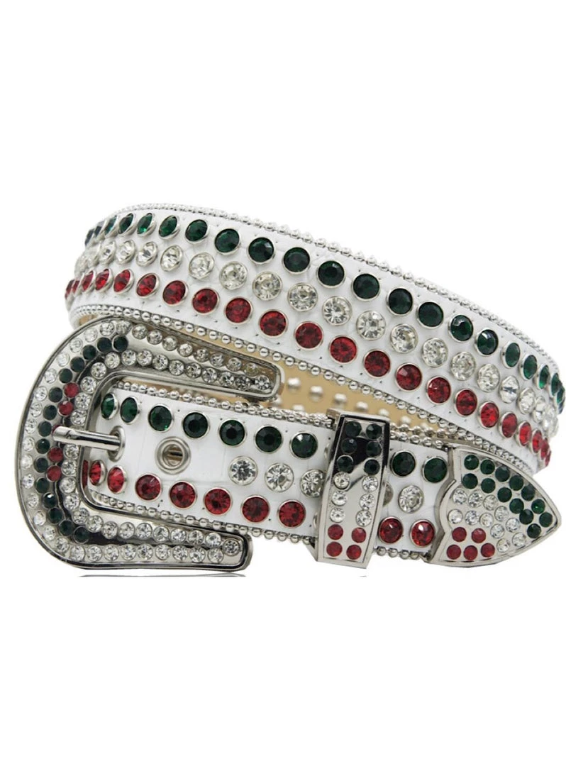 DNA Belt – Stones – White Leather With Green And Red Stones Shop All