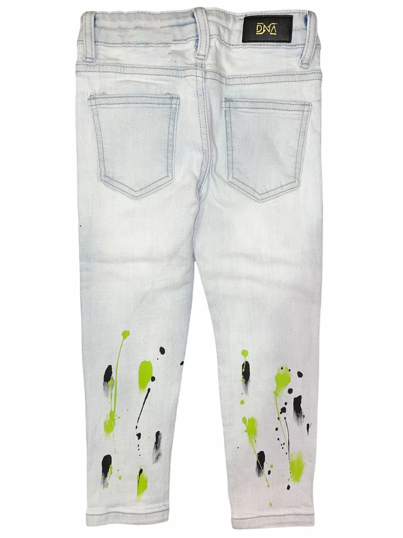 These kids jeans by DNA are form fitting made with durable materials. They are a skinny-stretch fit and run true to size.