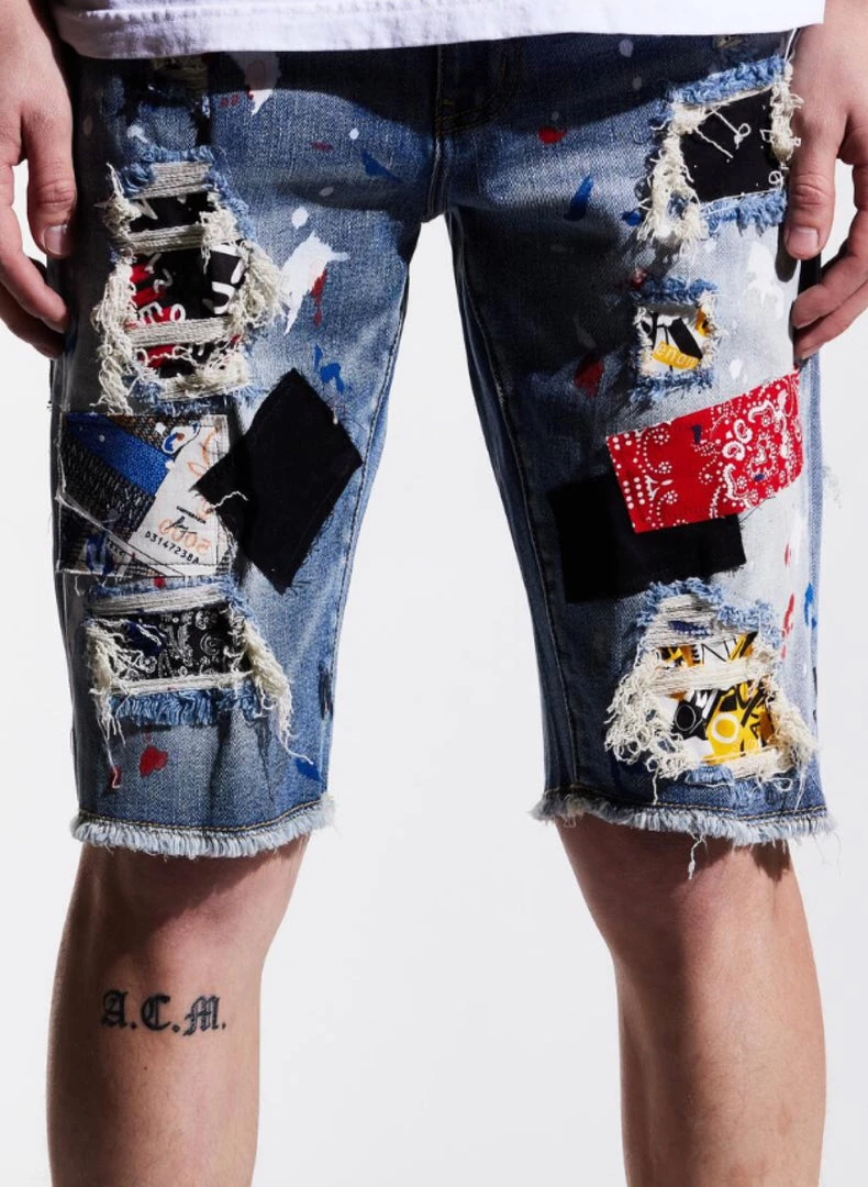 These Embellish Shorts are biker style and are skinny fit / skinny. They feature lines and cuts at the thigh. The inseam measures 34″. They are made of 98% cotton and 2% spandex.
