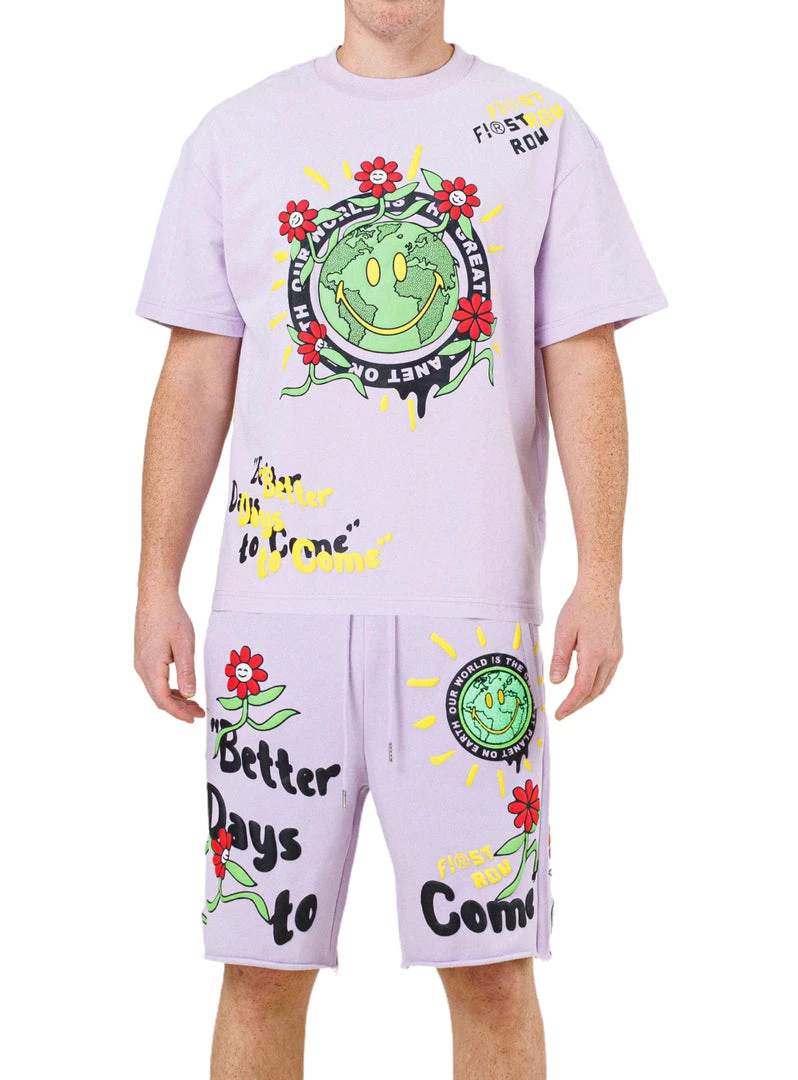 Graphic tee with puff printed details. Featuring a flat hem line and slightly dropped shoulder fit with short sleeves & a ribbed knit crew neck.