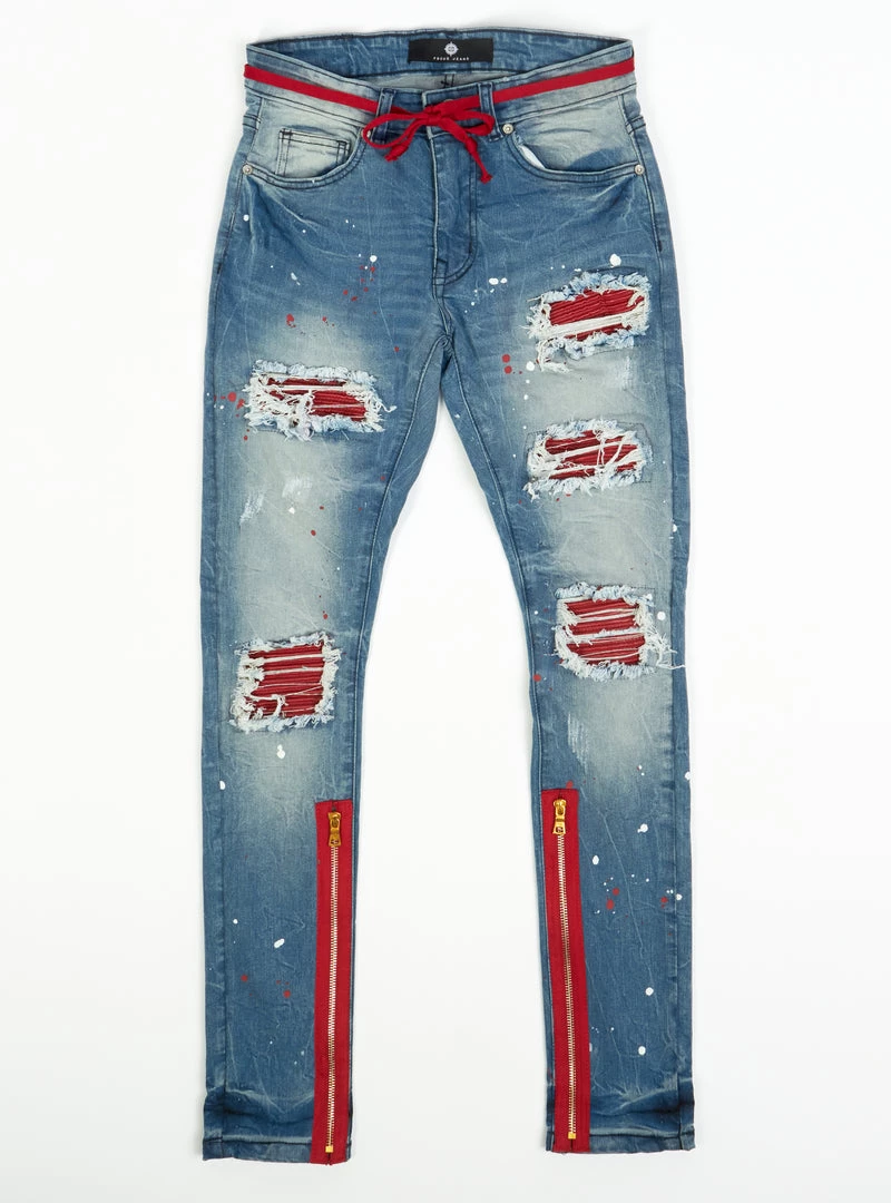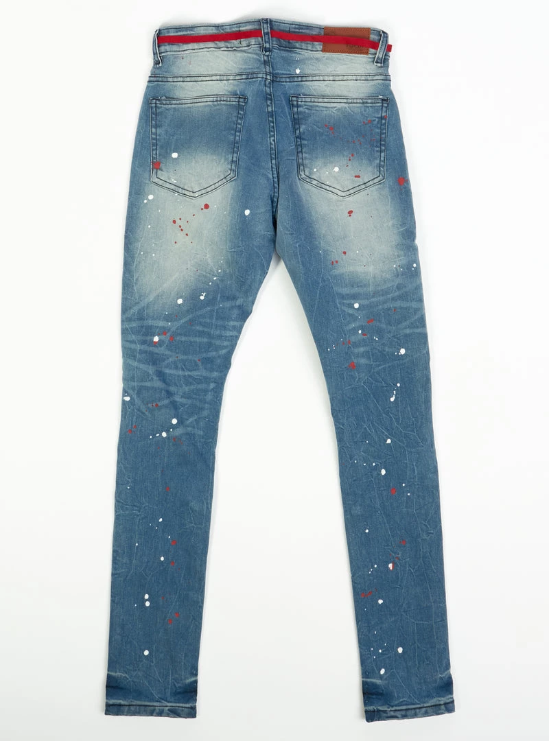 Focus Jeans – Leather And Paint – Blue And Red – 3350