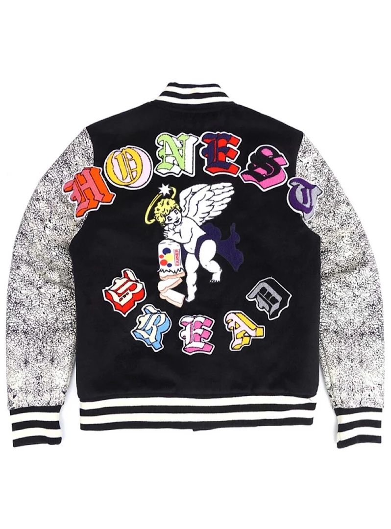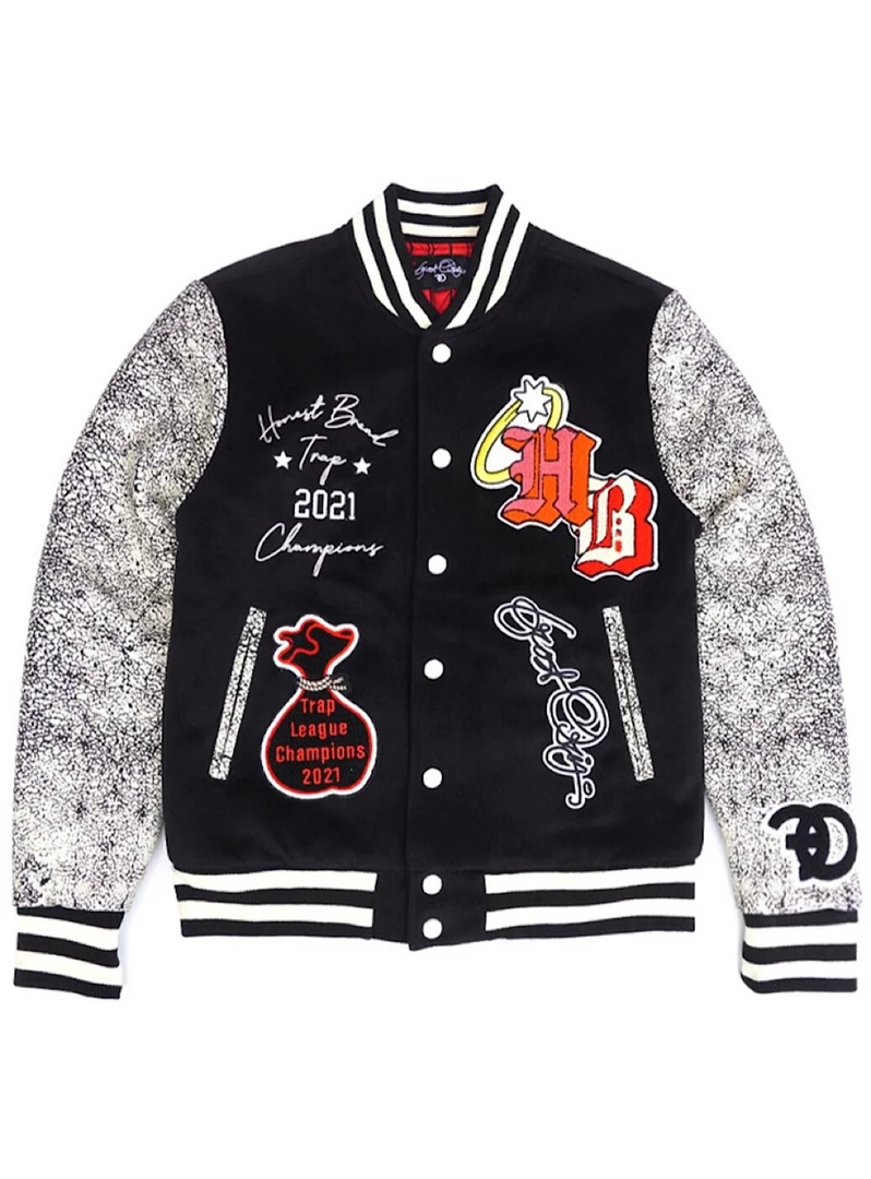 - Twill Fabric, Embroidery, Chenille Chainstitch w/ Rhinestones applique