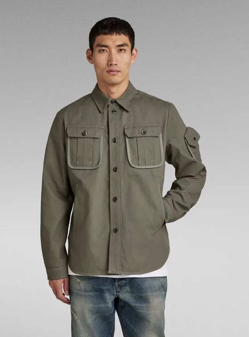 Overshirt Stand Collar has a slim fit and offers cargo pockets at the chest. As the back of the collar is reinforced by rows of stitching, it is possible to wear this shirt with a raised collar aesthetic as well. Slim welt pockets are added to the waist. Also the inside features two inner pockets. Long sleeves with an adjustable cuff offer an additional bicep pocket at one side. The curved hem completes this indoor jacket.
