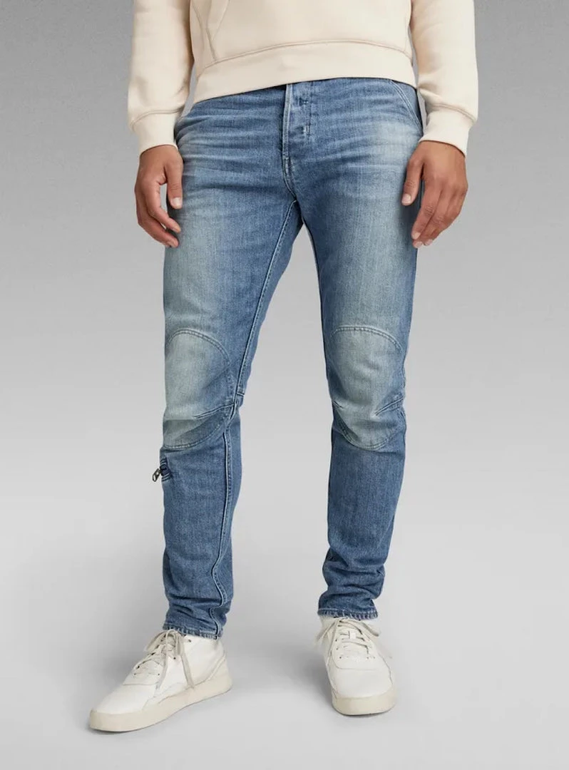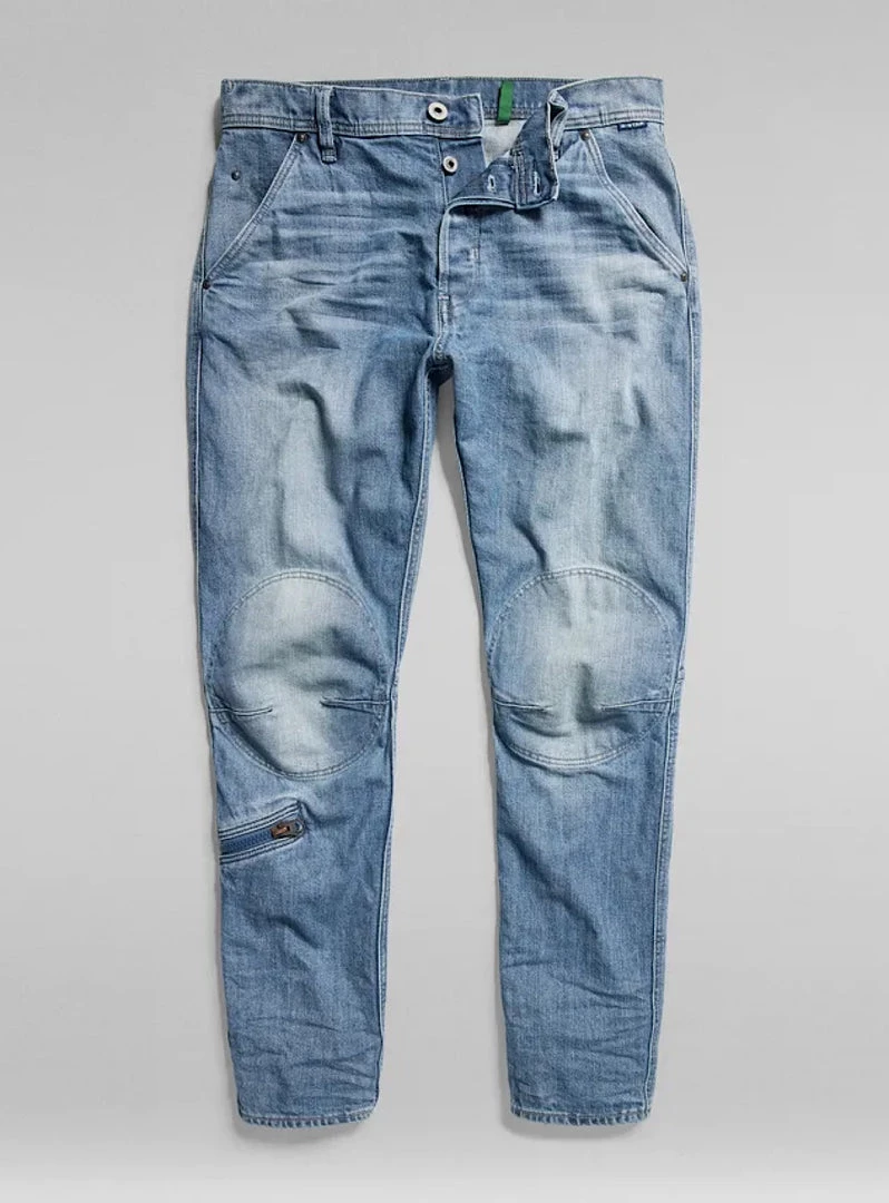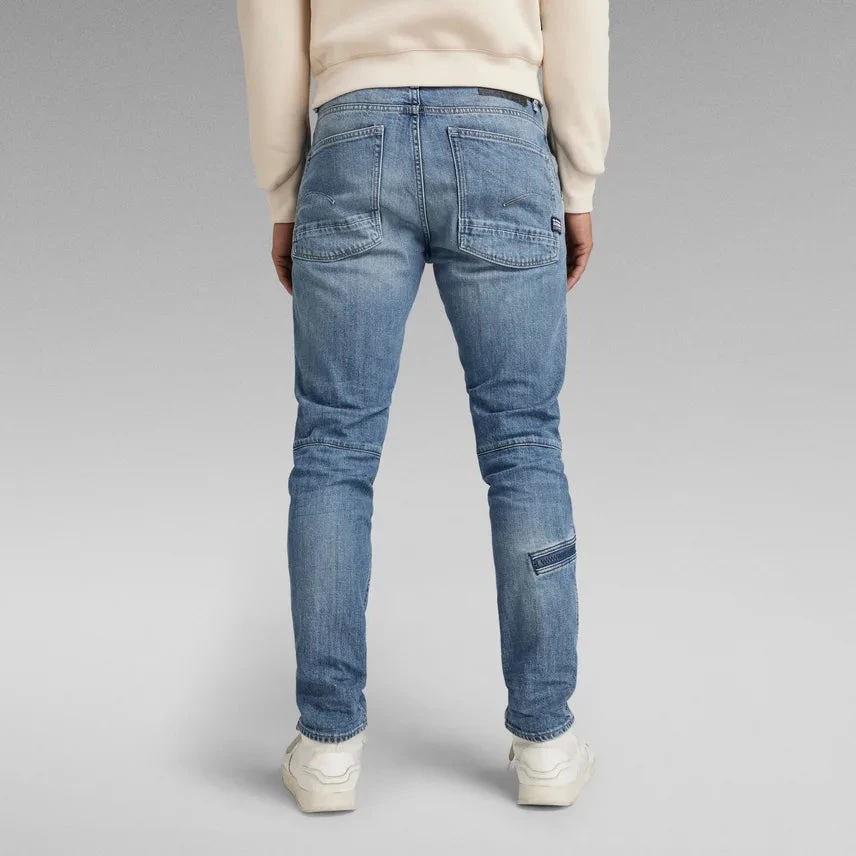 The Pilot 3D Slim is the latest innovative fit from G-Star. This blueprint takes its inspiration from a vintage Type A-11 US Army Air Force Flight Pants, worn by fighter pilots and air crew during WWII. This is visible through the elongated patches that reinforce the shaped knees. The chunky zipper pocket placed across the calf is another feature known from these types of army pants. Back pockets with a shaped edge are reinforced by a double layer at the bottom. Front inset pockets, combined with a hidden coin pocket on the inside of the waist, complete this detailed design.