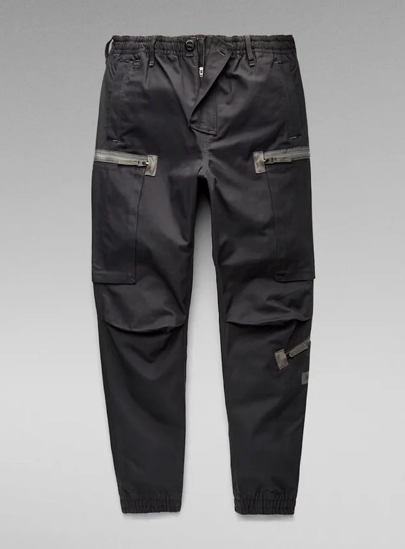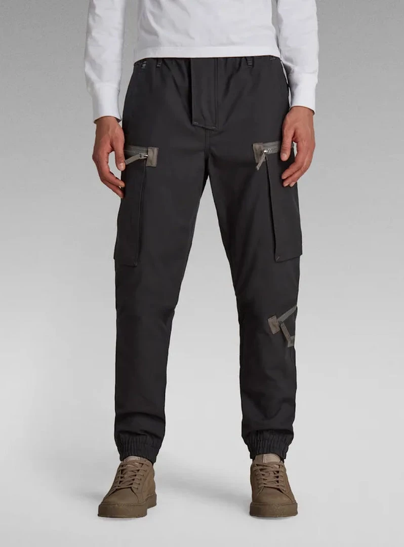 These skinny cargo pants Zip Pocket 3D are shaped by precisely placed seams. Woven tape, applied at the entrance of the front pockets, offers reinforcement. The thigh pockets have a roomy cut, designed with a hidden zipper closure along the sides. The back pockets with a flap and button closure, give the final touch to this tailored piece.