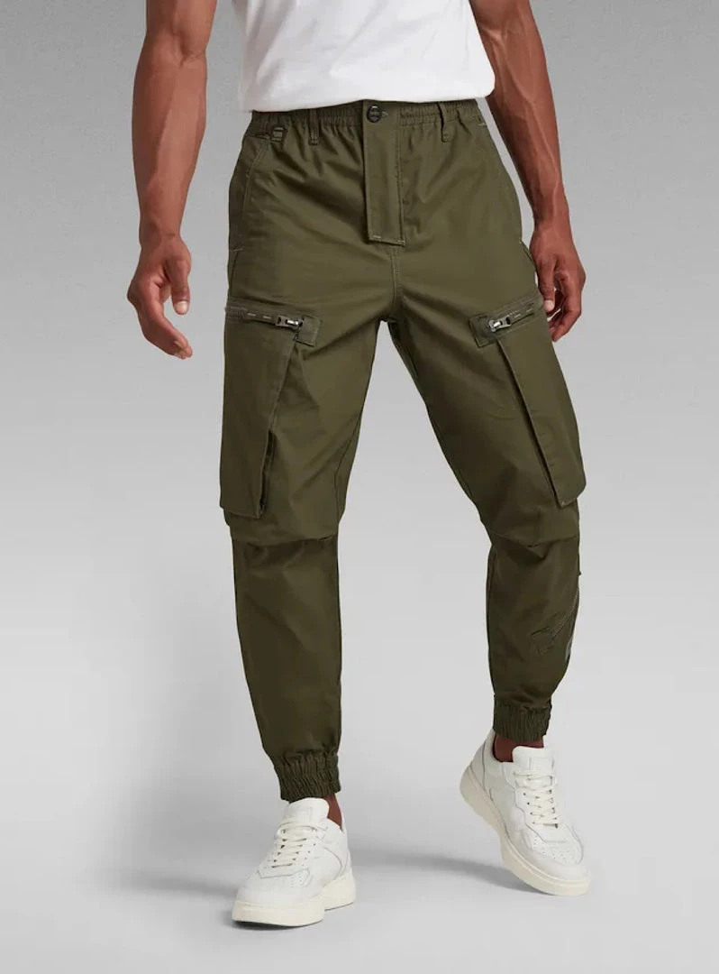 These skinny cargo pants Zip Pocket 3D are shaped by precisely placed seams. Woven tape, applied at the entrance of the front pockets, offers reinforcement. The thigh pockets have a roomy cut, designed with a hidden zipper closure along the sides. The back pockets with a flap and button closure, give the final touch to this tailored piece.