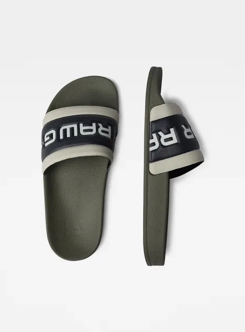 These lightweight Cart slides show a raised RAW design at the strap. The ergonomic footbed allows for a relaxed modus.