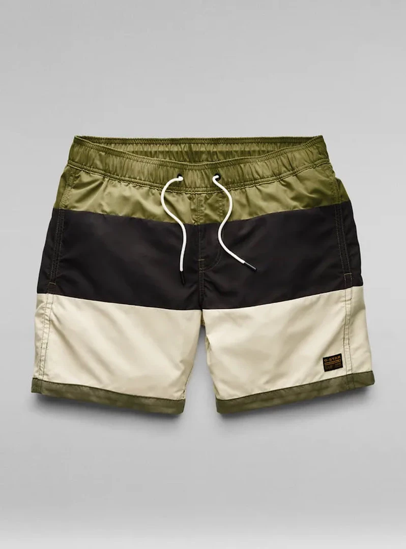 Swim shorts Dirik Color Block feature a wide striped design. The elastic waistband offers an incorporated drawcord to enhance a personalize fit. Side seam pockets are combined with a slim welt pocket at the backside. Inside, a mesh lining adds support.