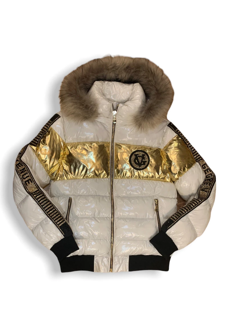 George V Puffer Jacket – Stones – White And Gold – GV9628