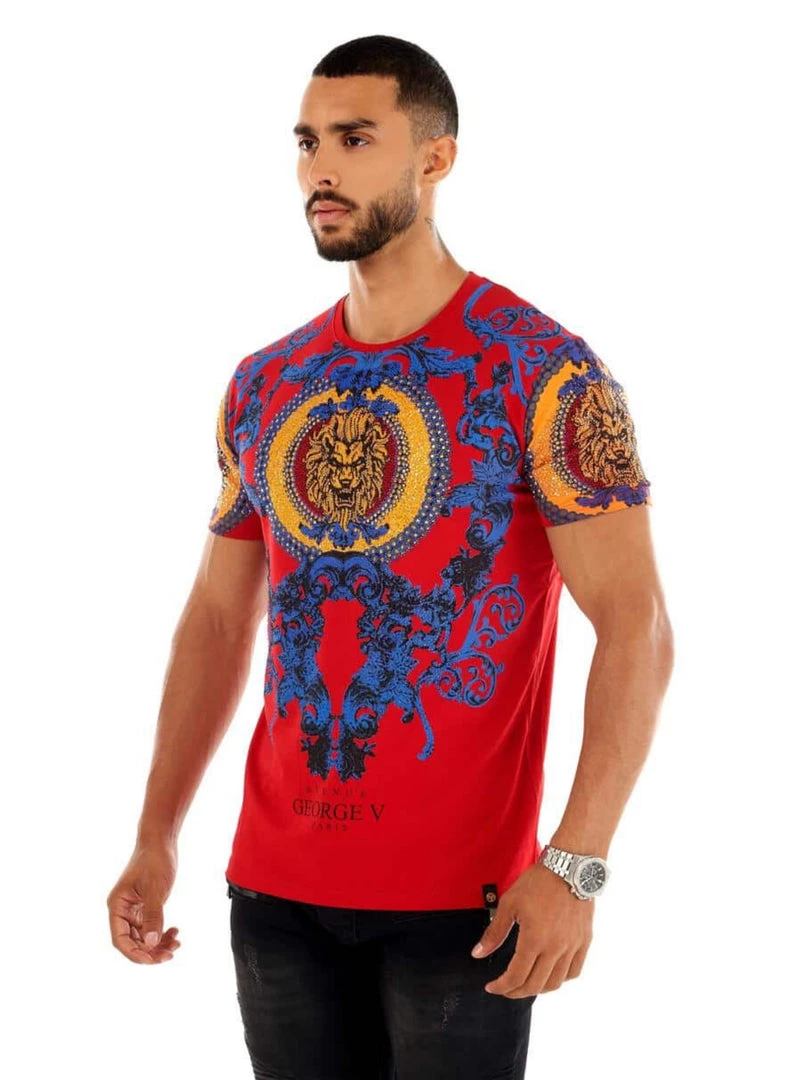George V T-Shirt – Lion Ornement – Red – GV-2303