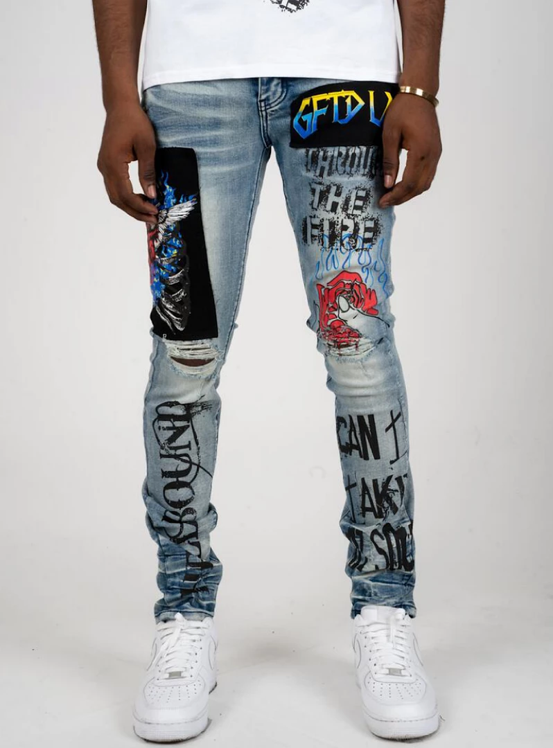 These GFTD jeans are made in Los Angeles with high quality materials and unique design work. These styles are built to last and fit true to size.
