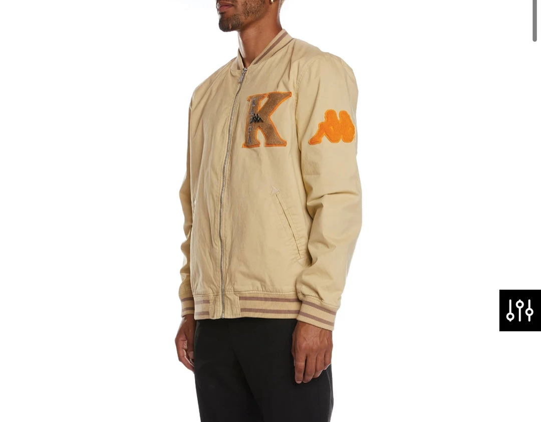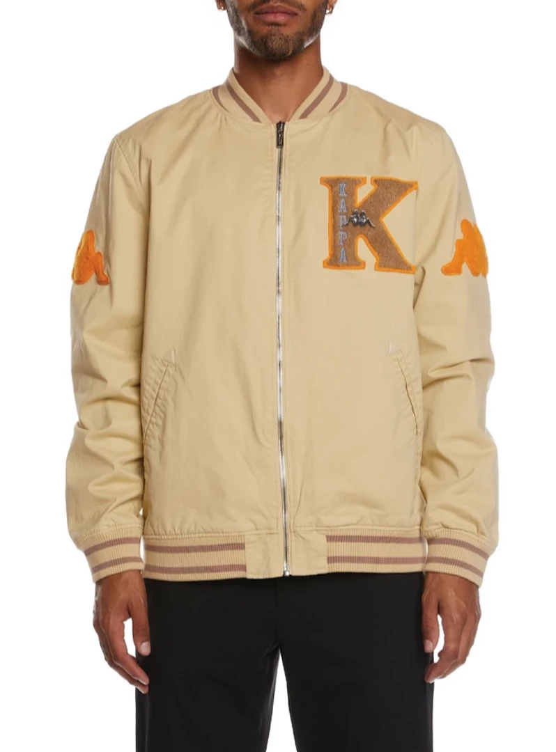 Mens cotton stretch varsity jacket. REGULAR FIT. Omini logos applied on sleeves, Kappa wording on back. K patch on chest with personalized pin. Textile Composition: Cotton 97%, Elastane 3%; Padding: Polyester 100%.