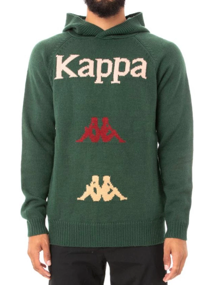 Mens hooded sweater. REGULAR FIT Intarsia Kappa and Omini logos on front. Materials: 100% acrylic.