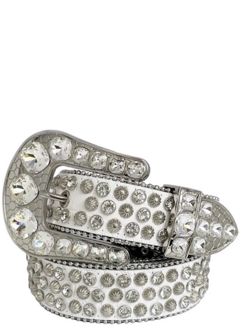 Karma Belt – Alligator – White With Silver Stones – Style 2