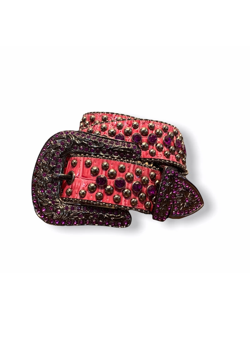 Karma Belt – Stones And Studs – Pink Leather With Purple Stones