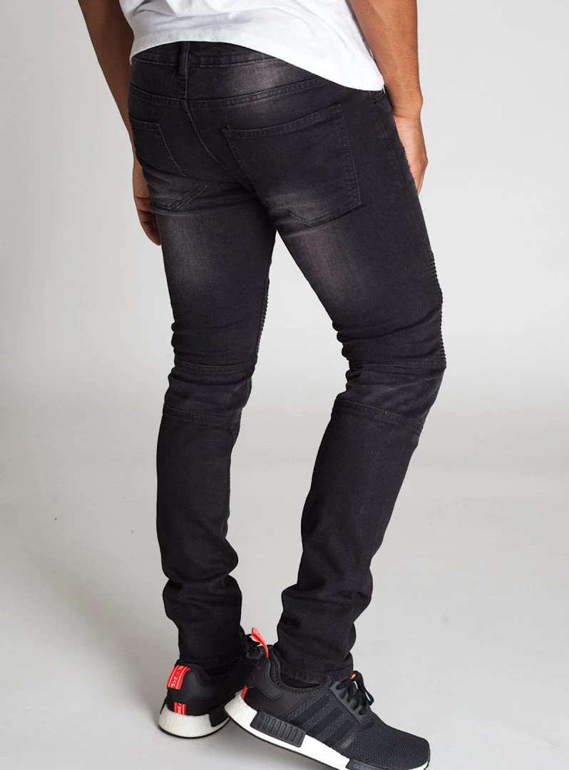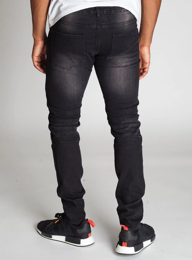 Slim fit jeans, Ripped detail at front leg with a reflective tape up the sides of each leg.