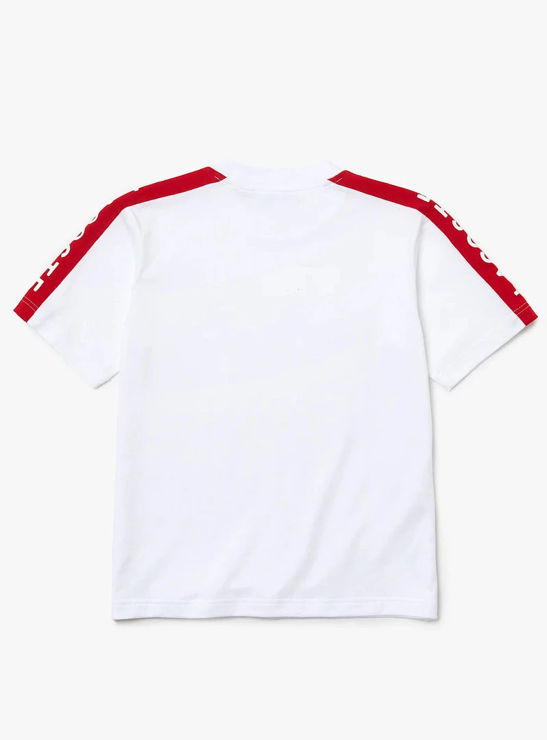 Contrasting lettered bands adorn the shoulders and short sleeves of this solid crew neck t-shirt. Designed for budding crocodile fans, the fitted piece is crafted in comfortable cotton jersey. Boys can wear it with pride to match any favorite jeans.