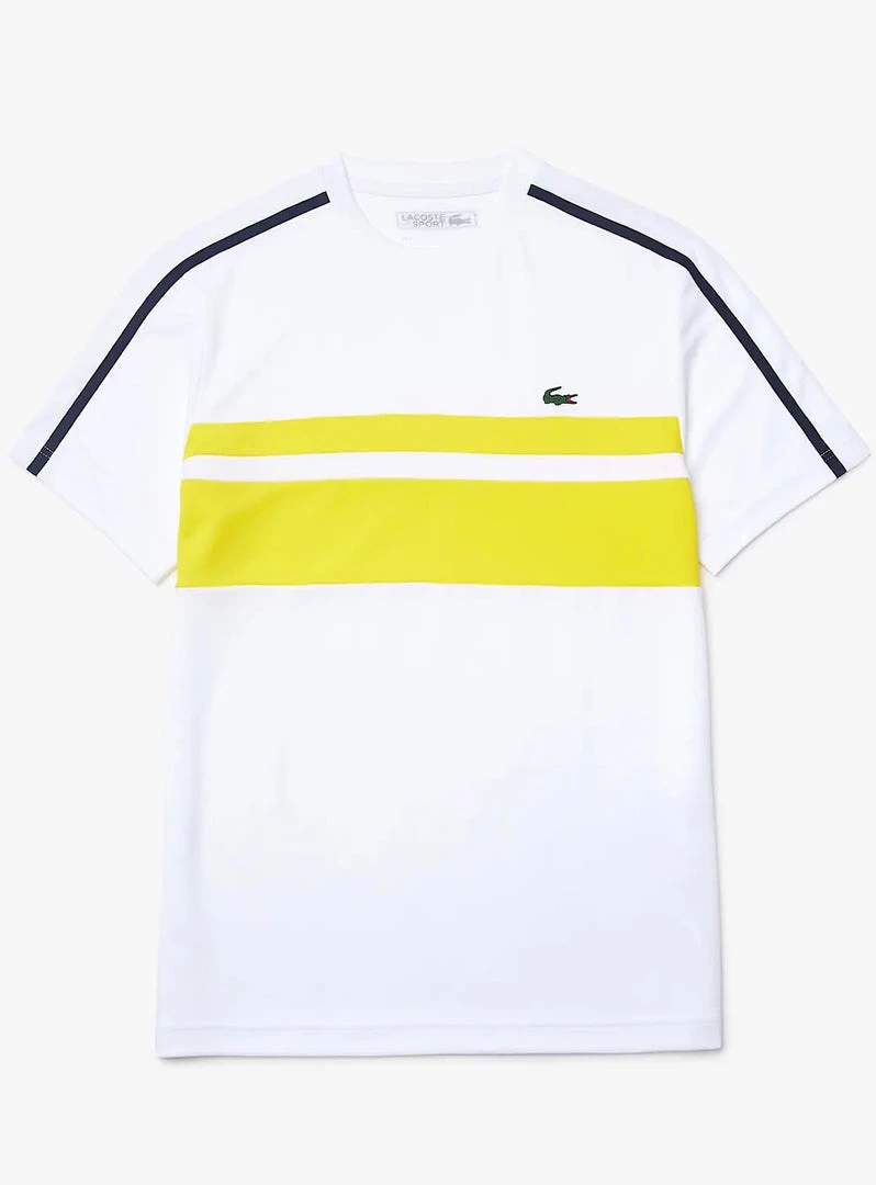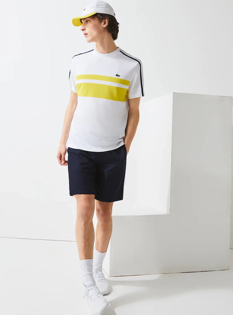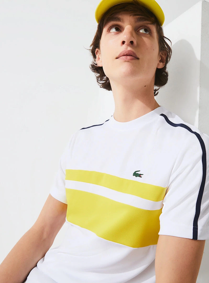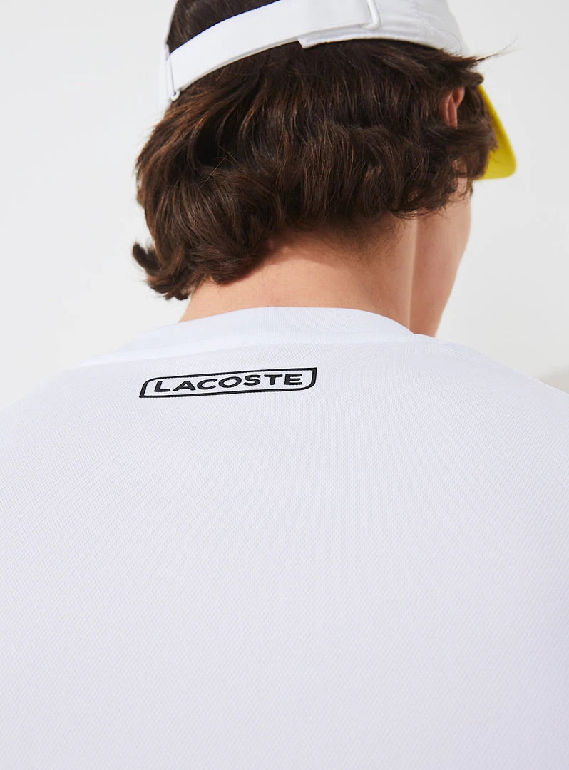 In breathable, resistant piqué with ultra-dry properties, this crew neck T-shirt from the Lacoste Sport collection is built for victory. Adorned with mesh panels and contrast piping on the shoulders, this performance-oriented piece is crafted without seams to bring you more comfort on the court. For a total athletic look, pair it with lightweight shorts from the collection.