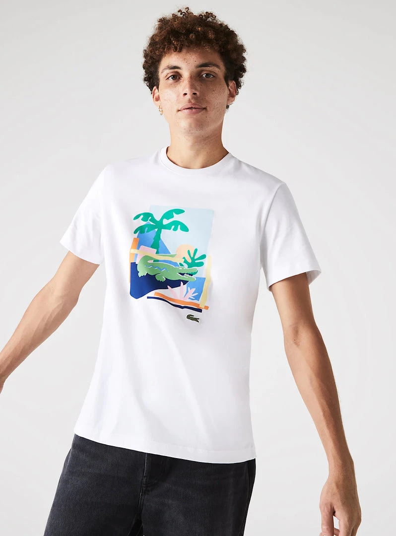 Pop flair injects energy into this crew neck T-shirt. With a graphic print on the chest, the thick cotton jersey piece features a trendy regular fit. A great item when you need a cheeky dose of color.
