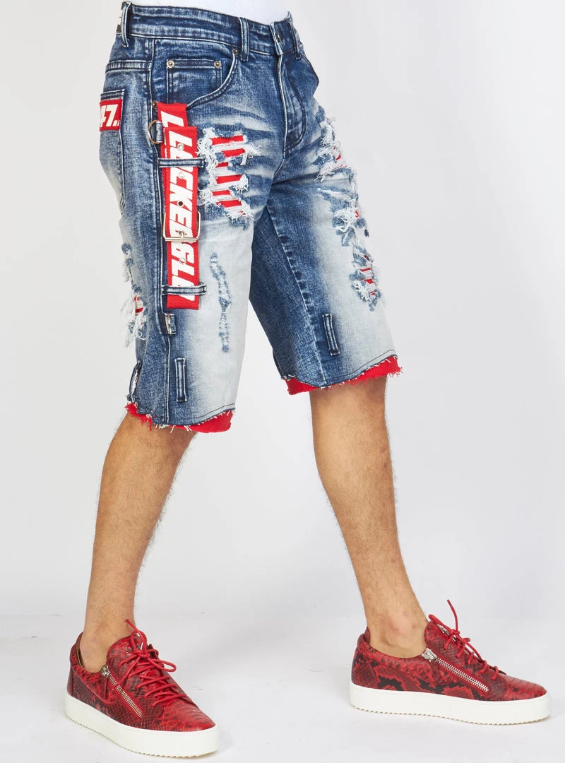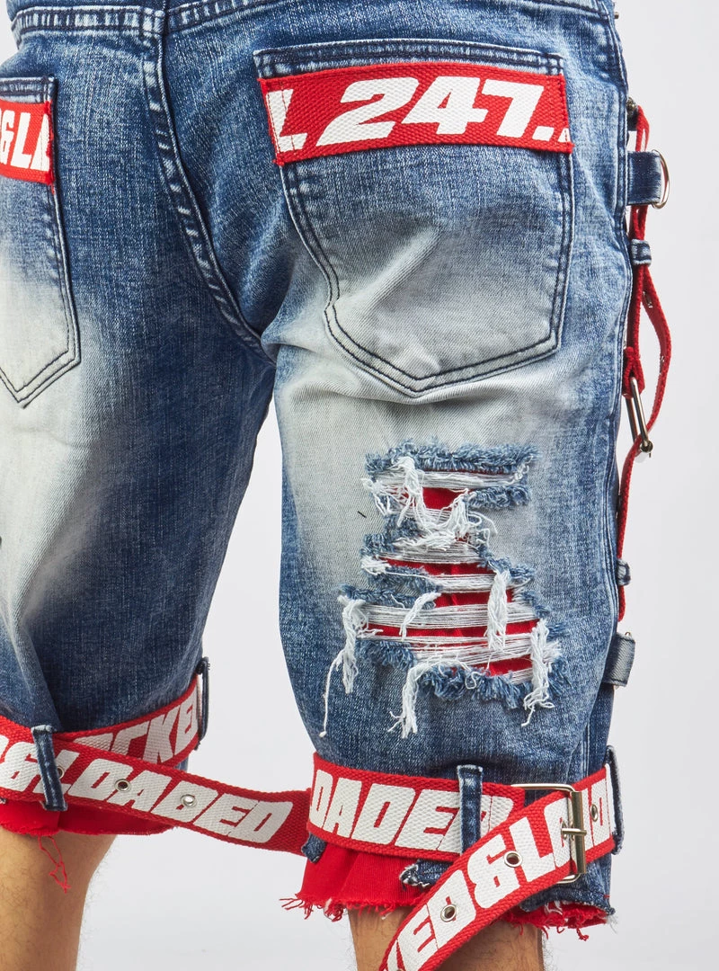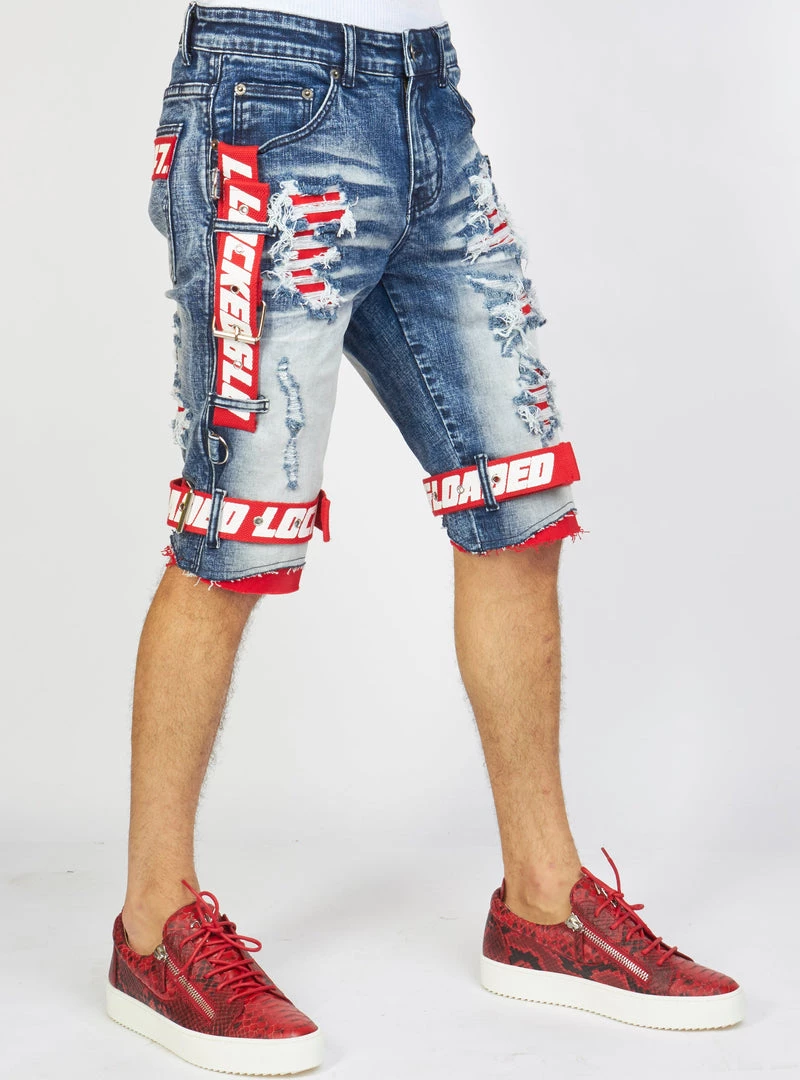 LOCKED & LOADED LNL Shorts – Strapped Denim – Medium Blue With Red And White – LDS421101 Shop All