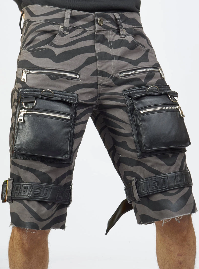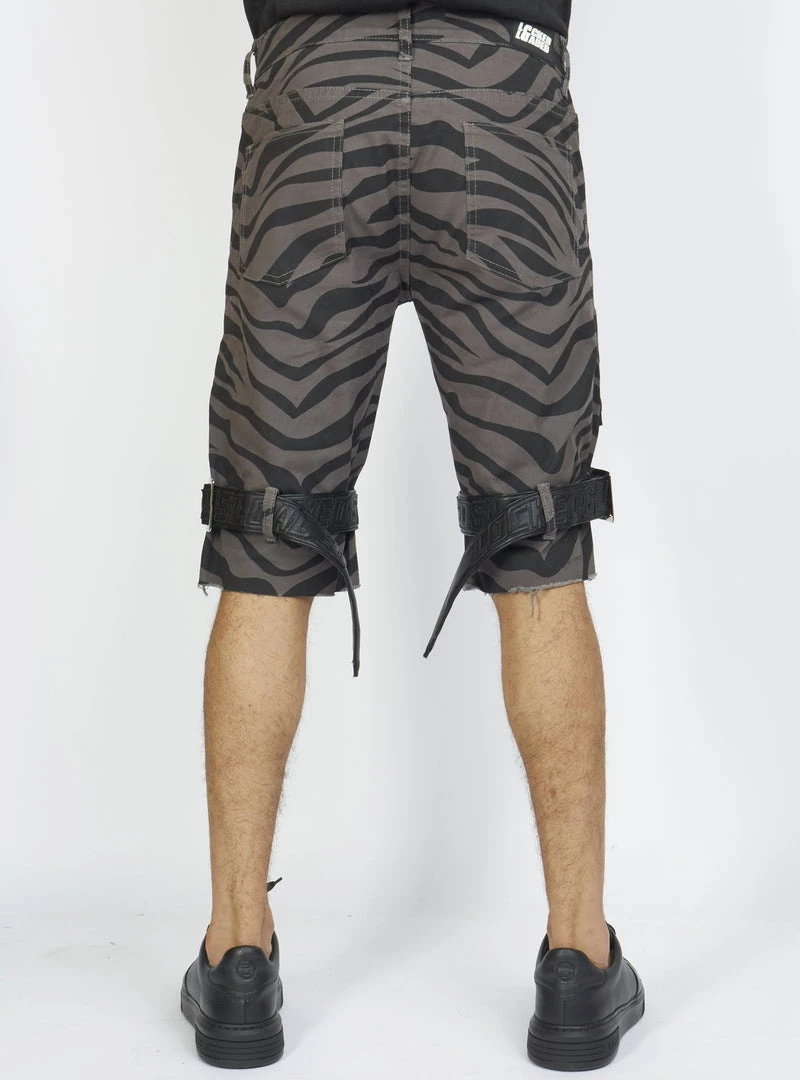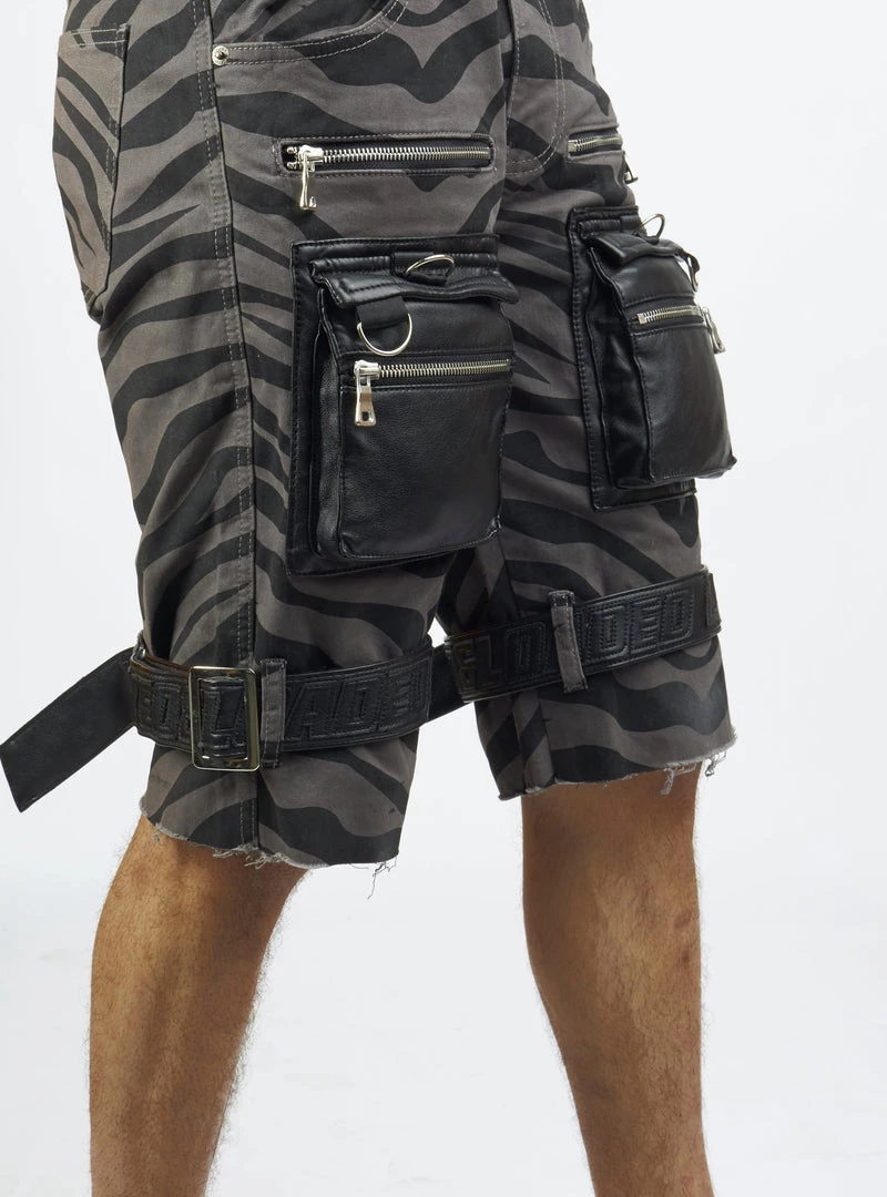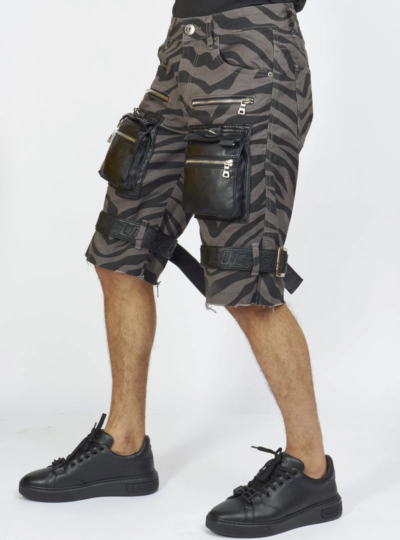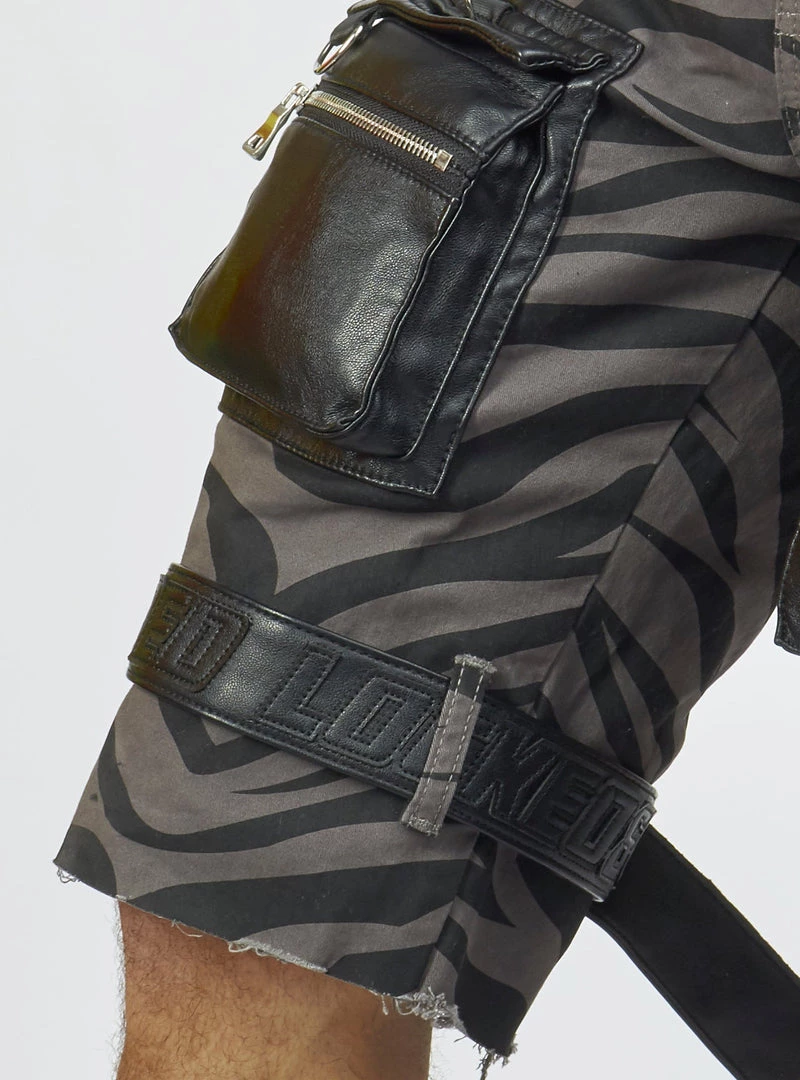LOCKED & LOADED LNL Shorts – Strapped W/ Leather – Dark Grey And Black Zebra – LDS421103
