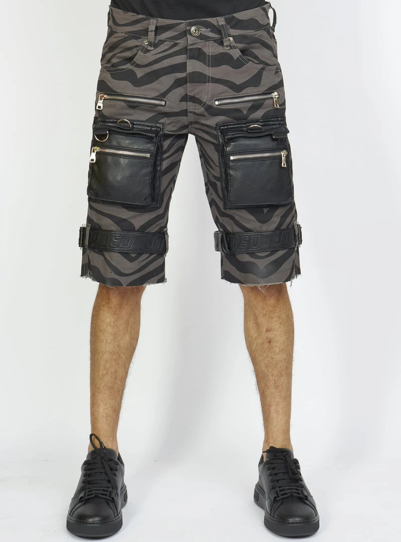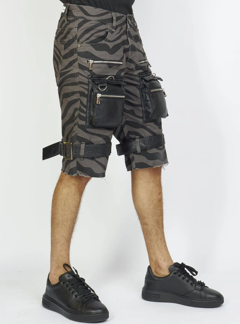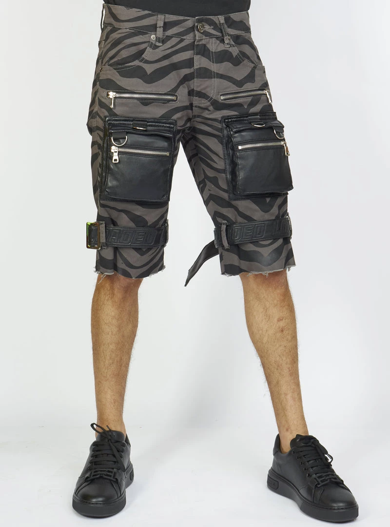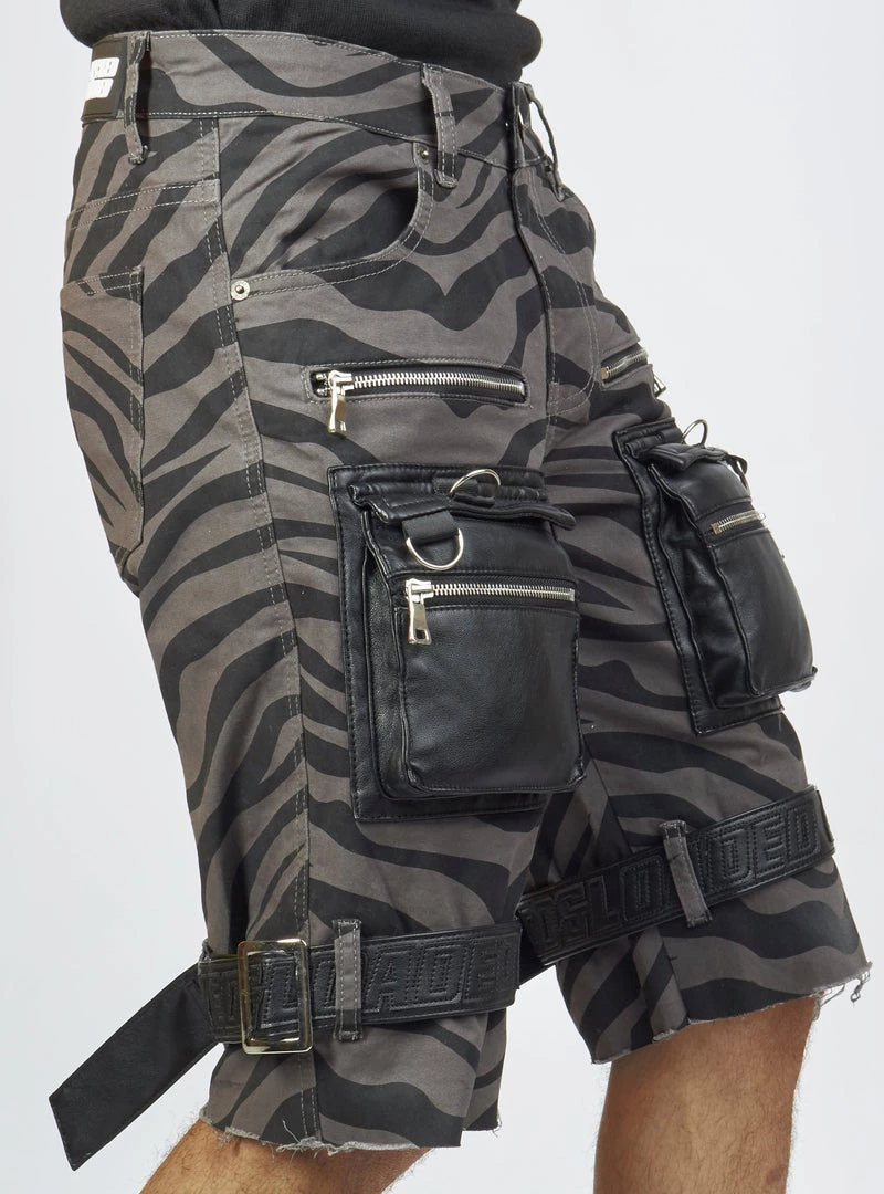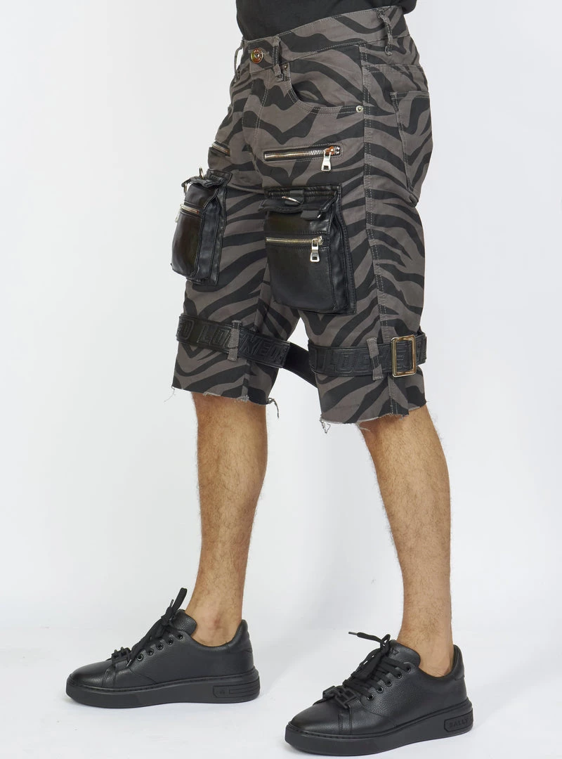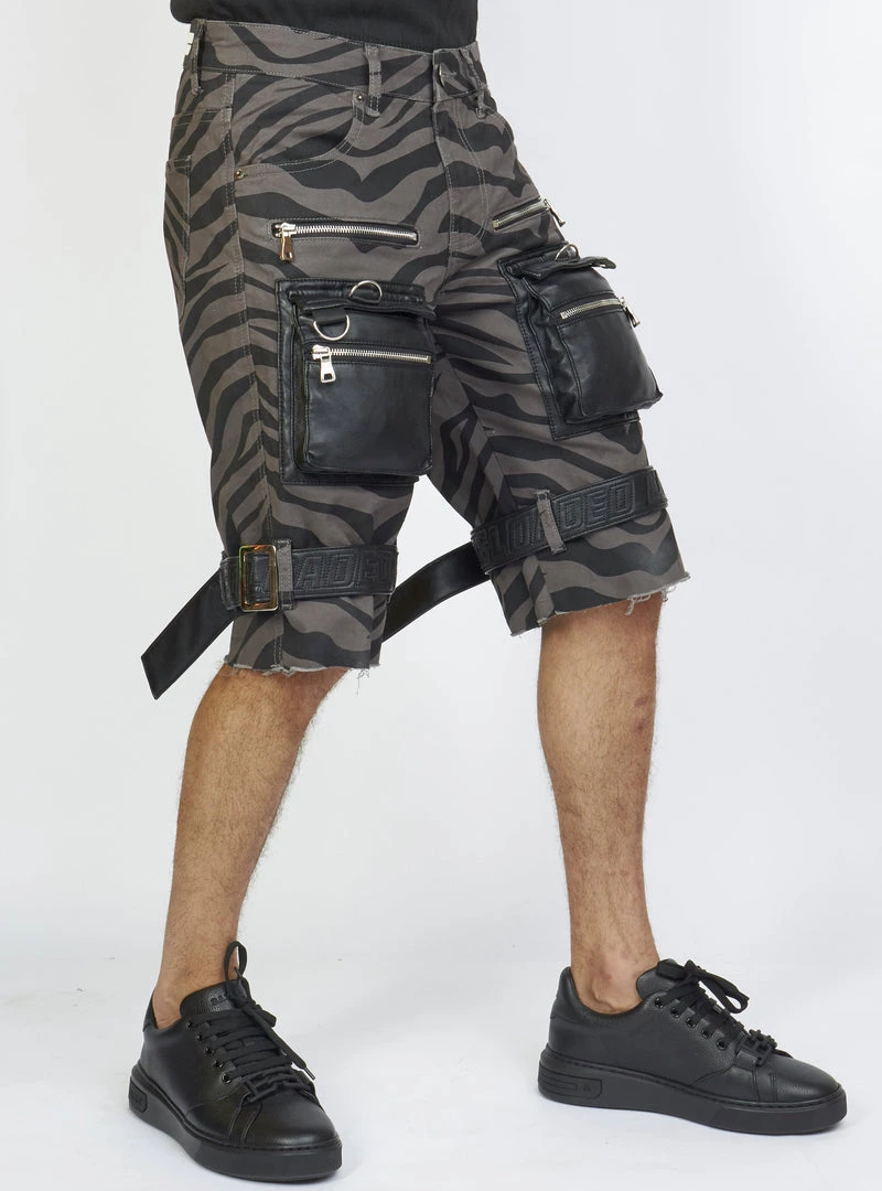 LOCKED & LOADED LNL Shorts – Strapped W/ Leather – Dark Grey And Black Zebra – LDS421103