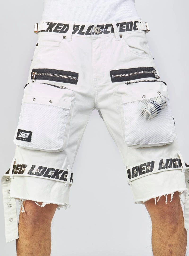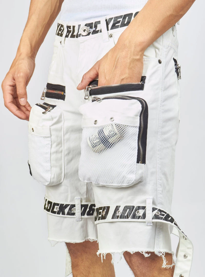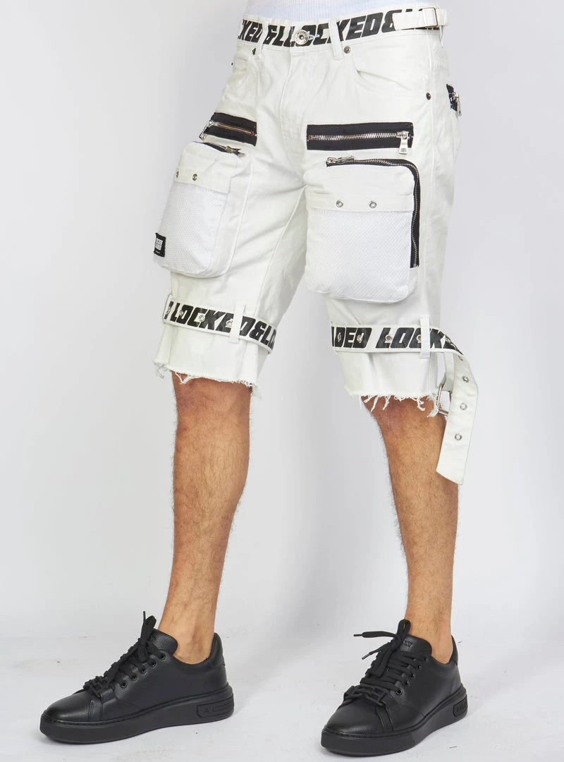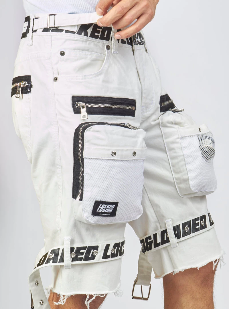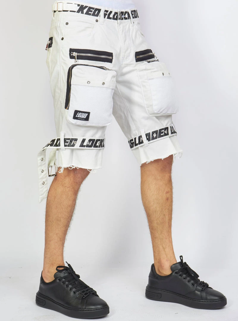 LOCKED & LOADED LNL Shorts – Strapped – White With Black – LDS421102