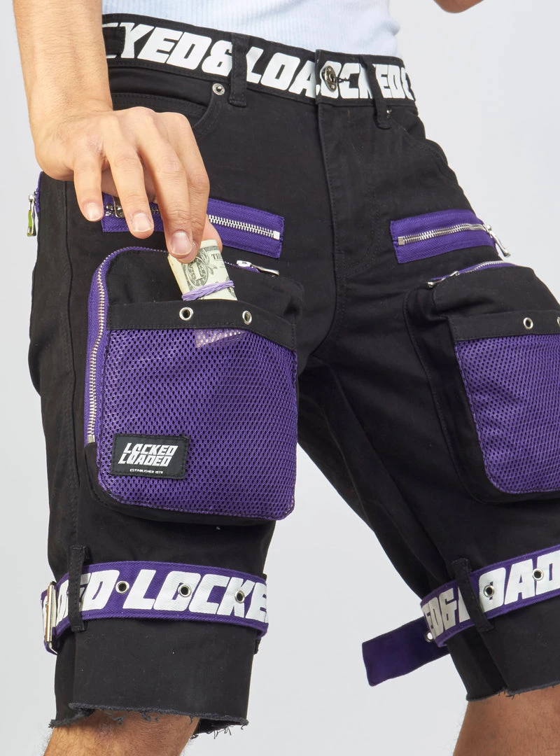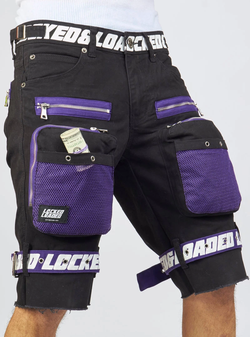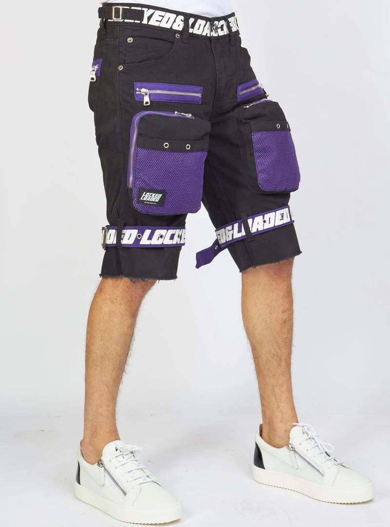 LOCKED & LOADED Shop All LNL Shorts – Strapped – Black And Purple – LDS421102