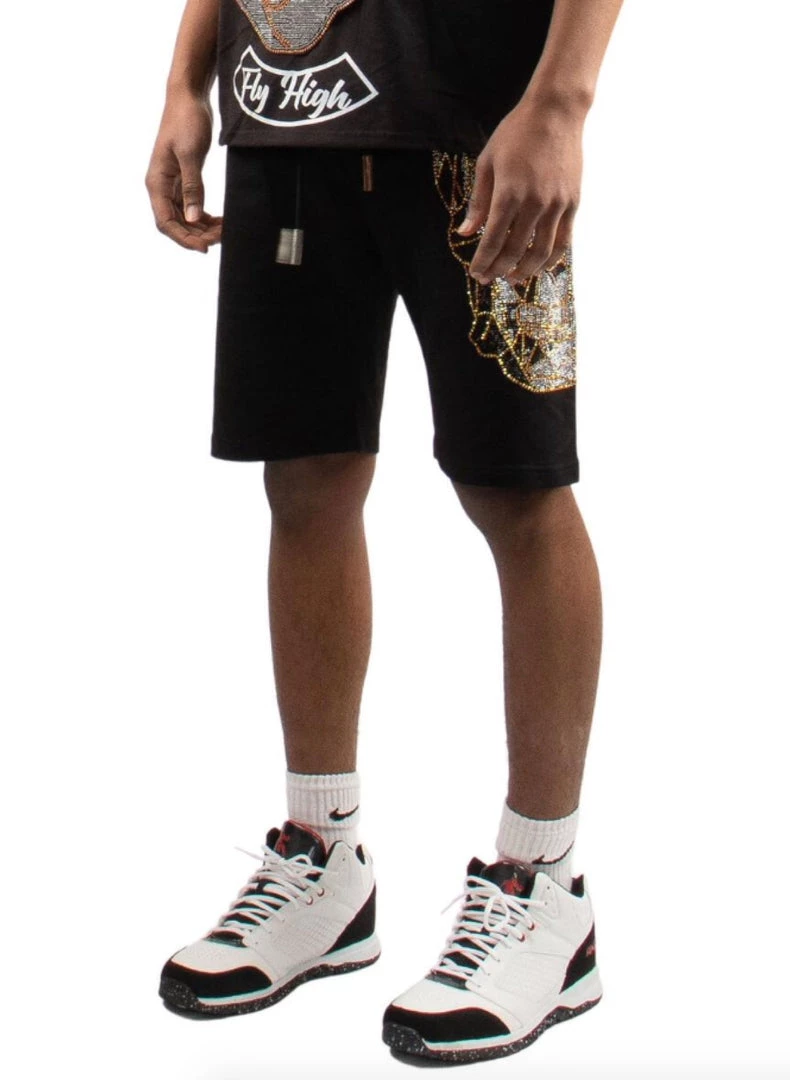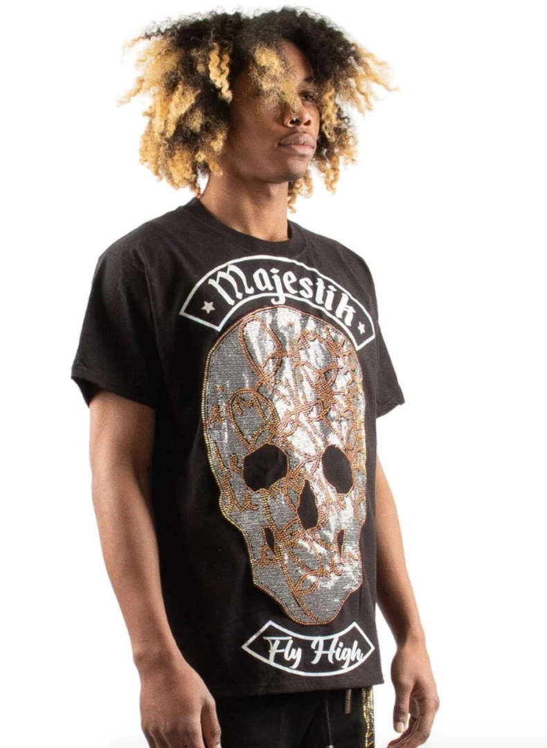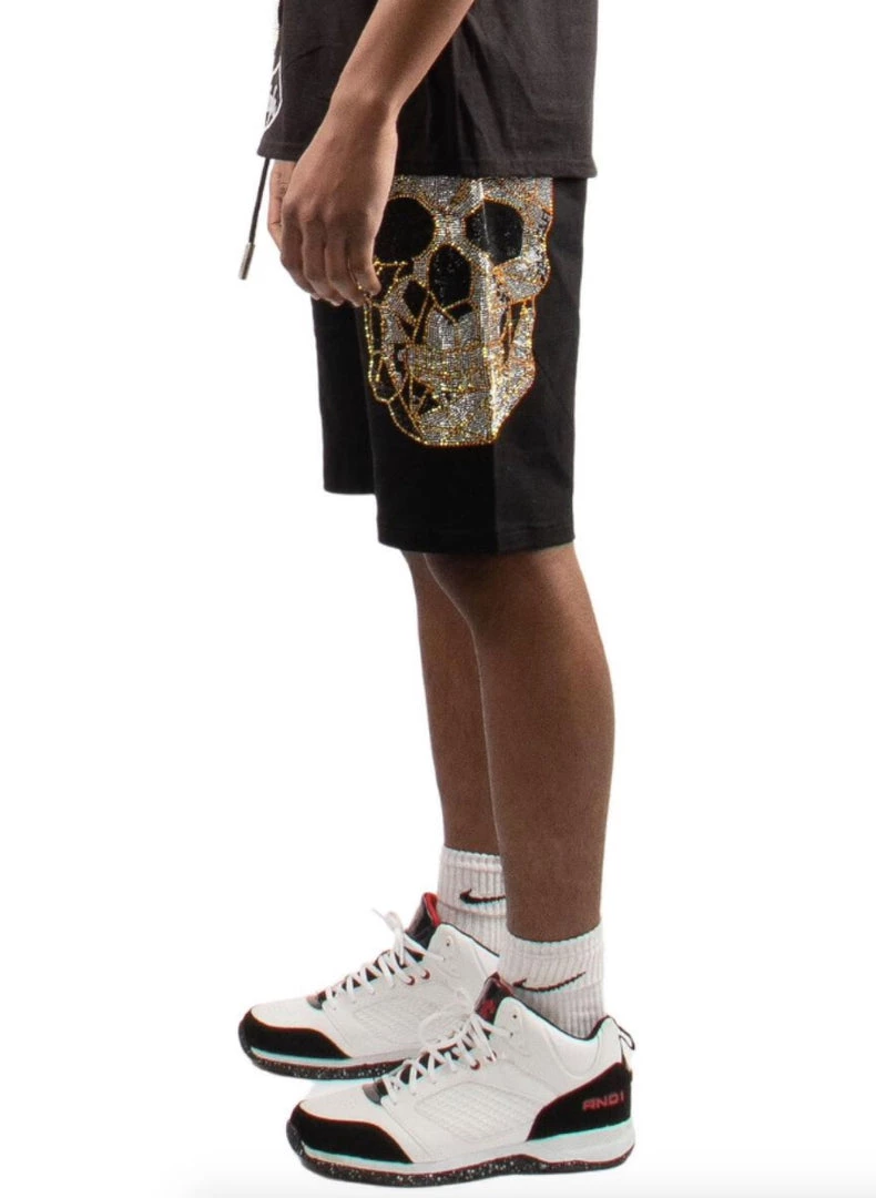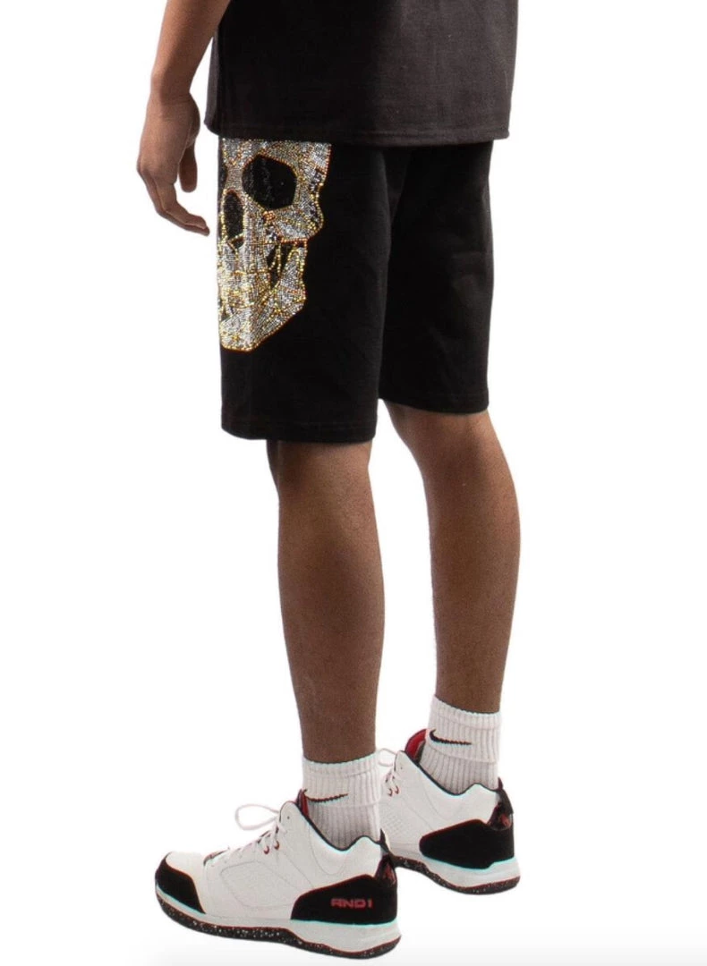 Majestik Short Set – Rhinestone Chain Skull – Black – TE2194