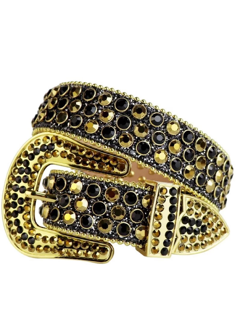 Milano Belt – Stones And Studs – Shiny Black And Gold Shop All