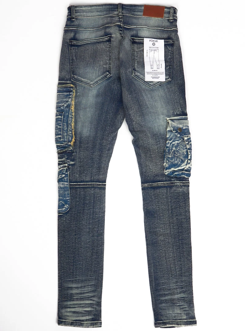 New Arrivals Focus Jeans – Ripped Side Pockets – Vintage Blue – 3413