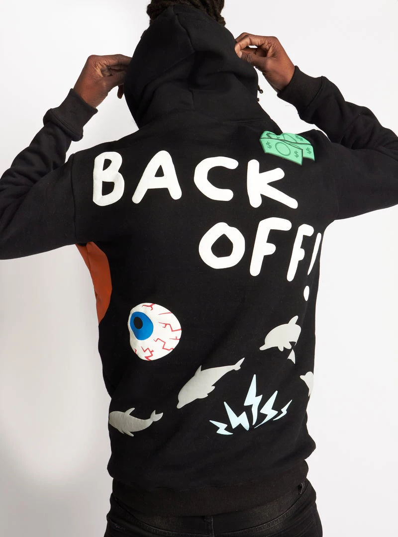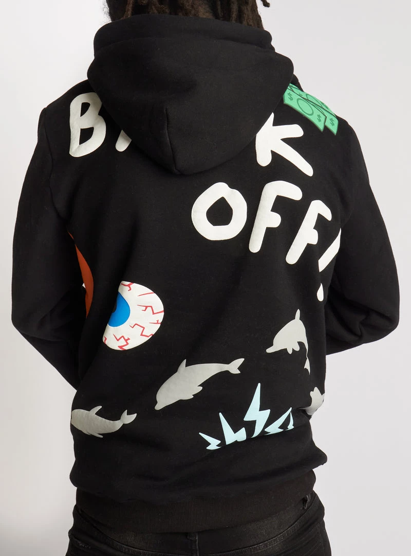 These high quality heavy cotton hoodies from Politics feature puff print and screenprint designs all over the piece. This collection matches colorways from T-Shirts, Track Pants, and Denim. The model is 6’2″ wearing a size M.