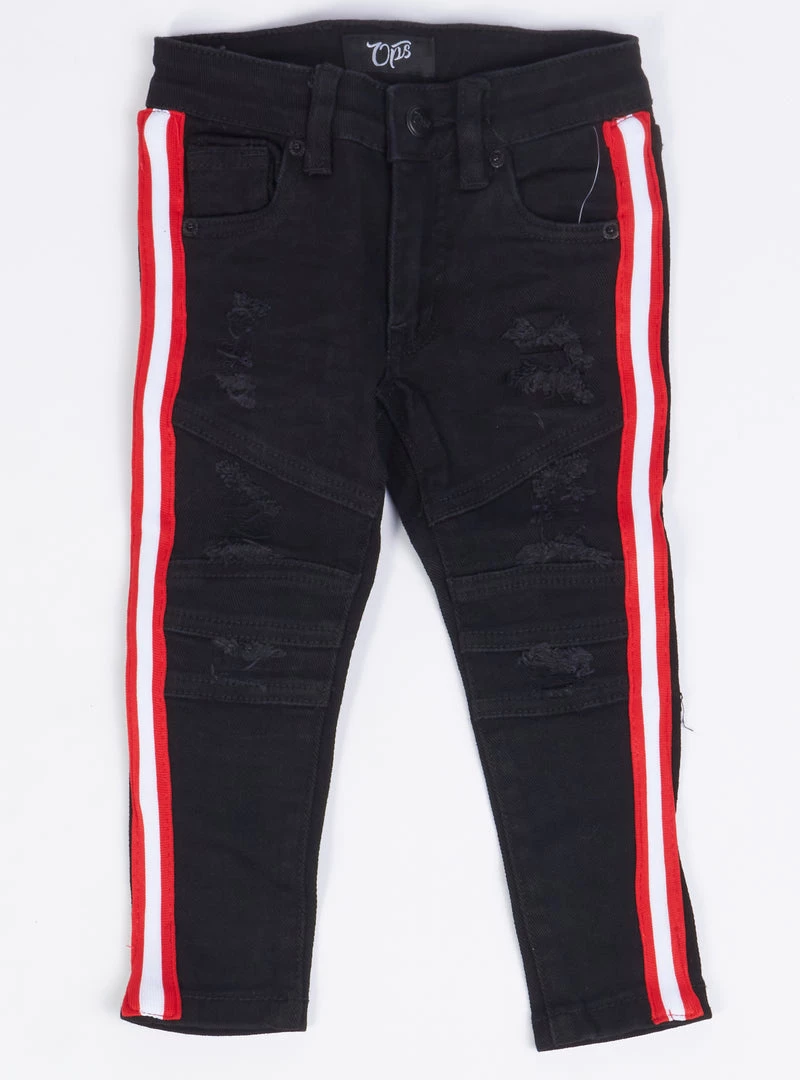 Ops Kids Jeans – Side Stripe – Black And Red – OPS1905K