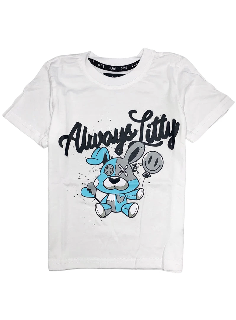 Ops Kids T-Shirt – Always Litty – White And Light Blue – OPS502K
