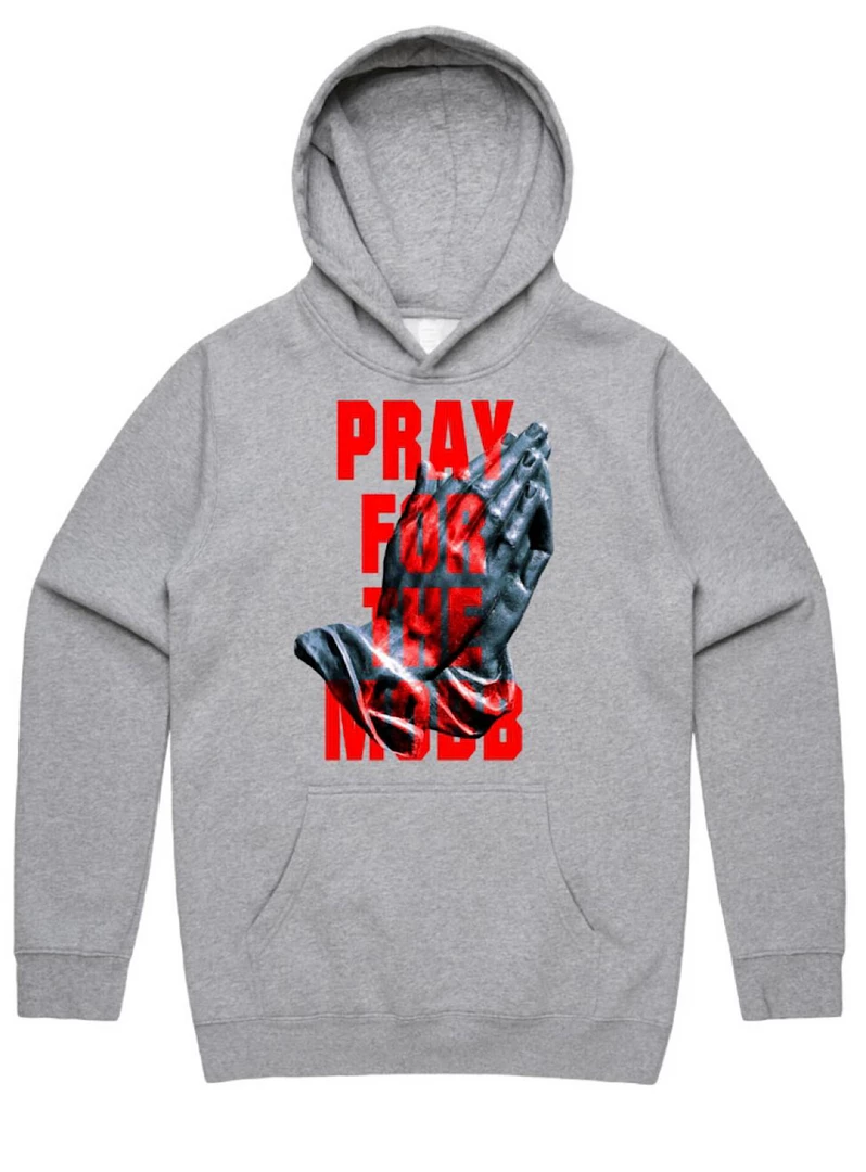Point Blank Hoodie – Pray For The Mobb – Heather Grey