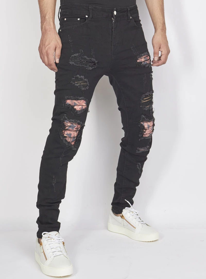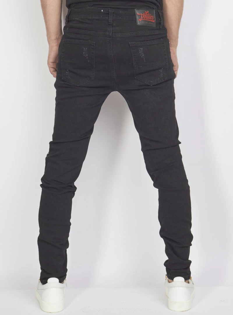 Politics Jeans – Distressed With Leaf Ribbing – Black – PLTKS0521662