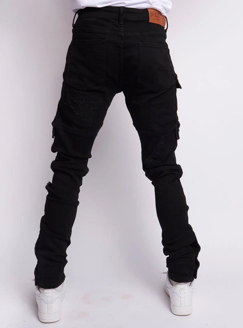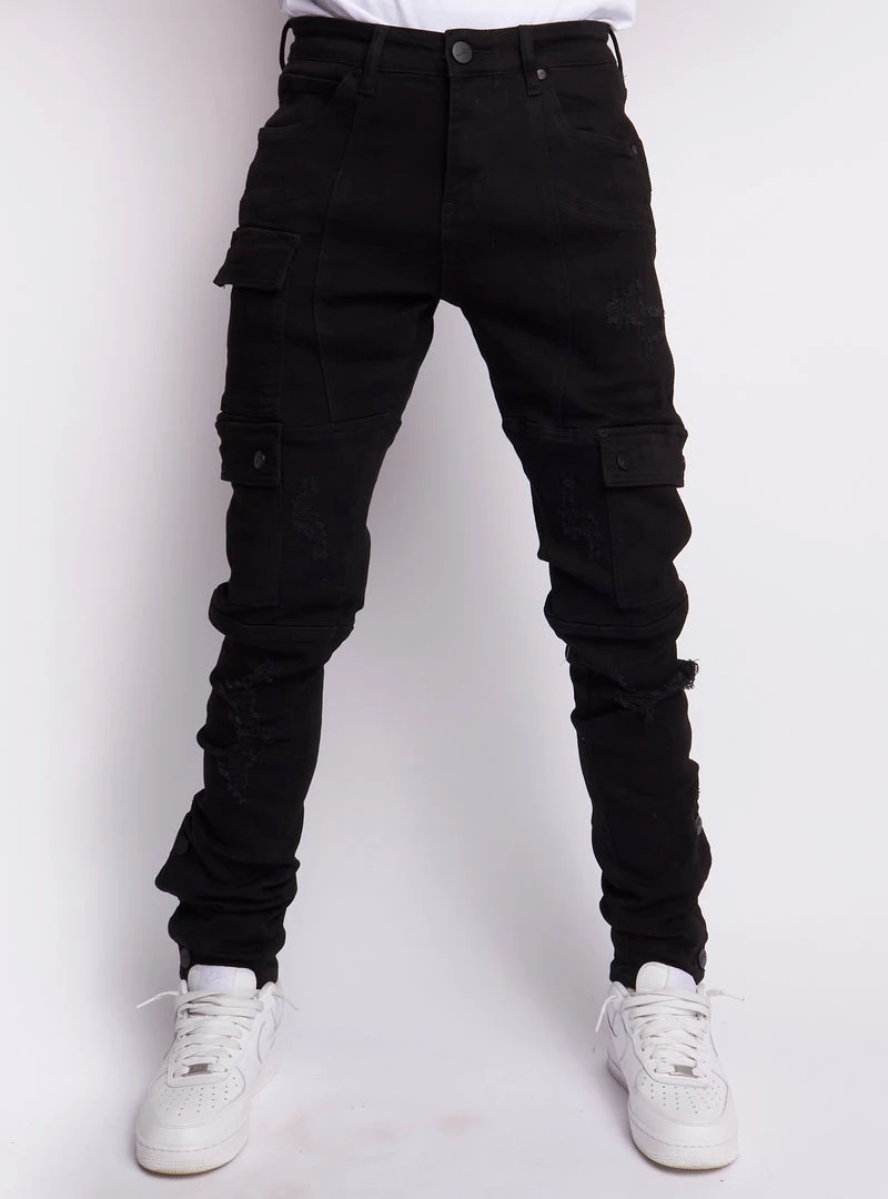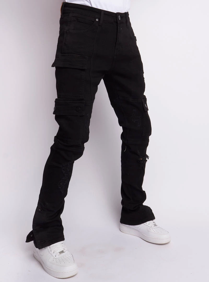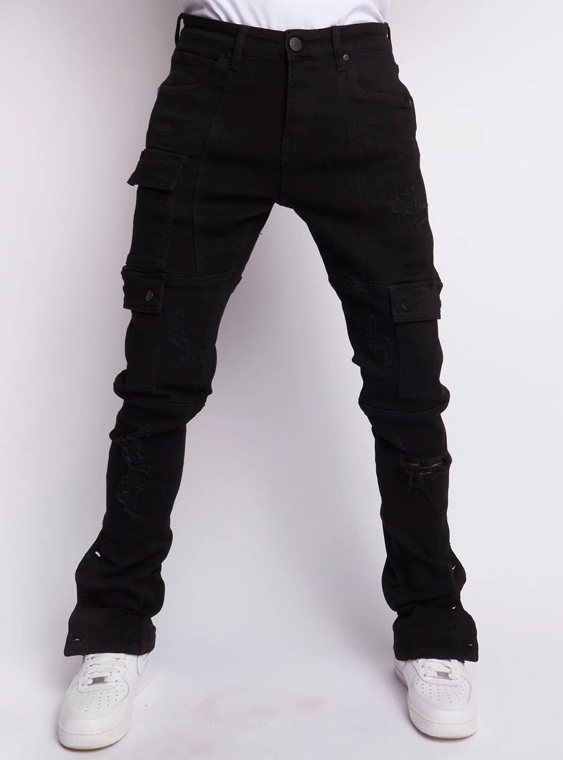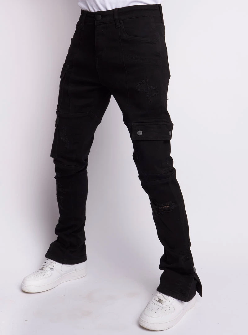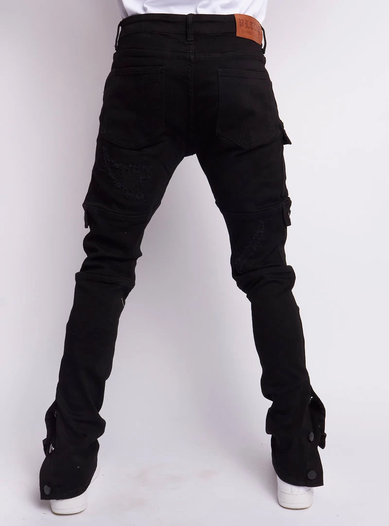 These jeans by Politics are soft, stretchy, and durable. This pair features adjustable buttons toward the ankles for a customizable flared or skinny look. These jean/cargo crossovers are versatile and high quality. Model is 6′ wearing a size 32.