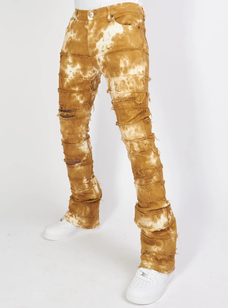 These jeans by Politics are soft, stretchy, and durable. These jeans feature tie dye wash all over with ripped out look. Jeans feature stacked look and fit. Model is 6′ wearing a size 32.