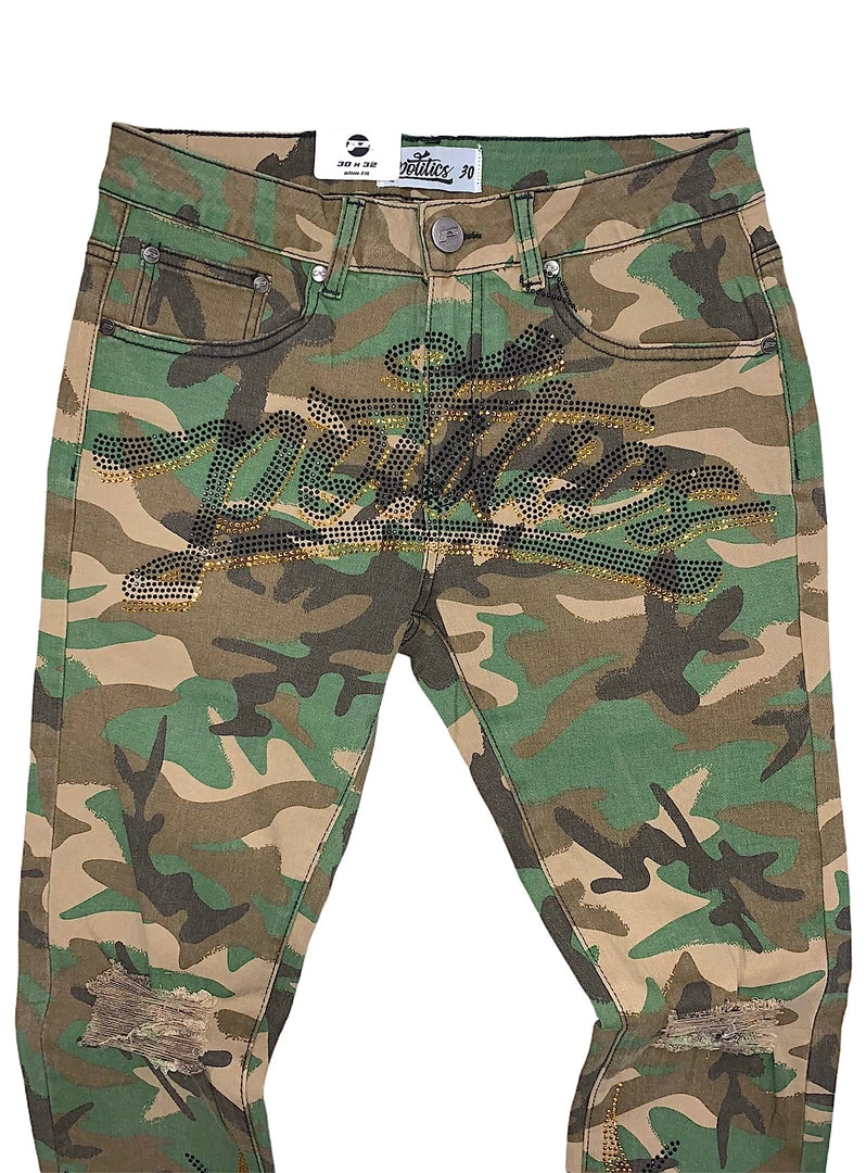 Politics Jeans – Stones And Flames – Army Fatigue With Black And Topaz – RSP 013