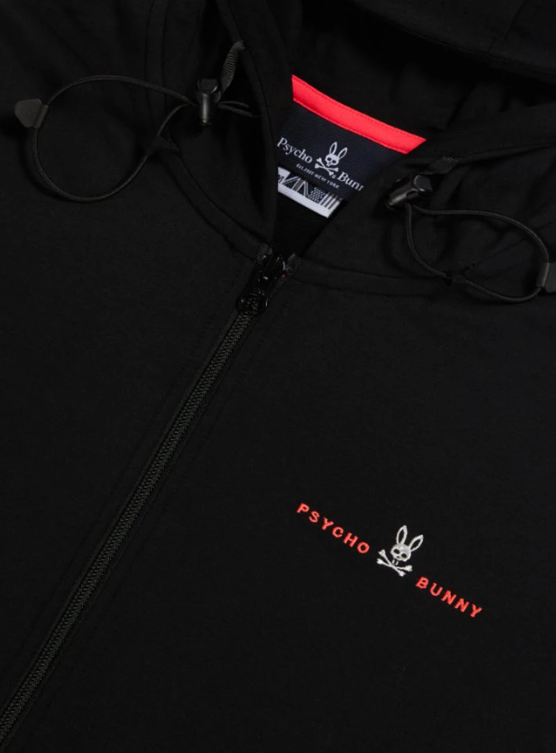 Our mens Palmer full zip hoodie isn’t your average hoodie. Crafted from 100% lightweight French terry cotton, the Palmer is incredibly durable and supremely comfortable. The Palmer features all the hallmarks of our trusted full zip hoodies, with kangaroo pockets, a two-way zipper and a structured hood. We’ve given the Palmer a modern twist, with an elastic lace lock drawstring system that allows the hood to be adjusted with ease. Two-toned tipping on the ribbed cuffs and hem match the sleek Psycho Bunny branding on the chest, giving the Palmer a tasteful touch of color that sets it apart.