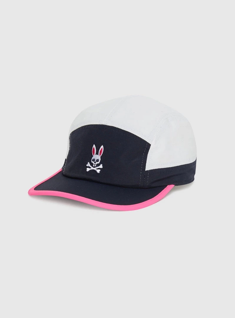 The mens Kipps sports hat offers an expressive pop of color to cap off any outfit. The Kipps hat features panel construction, with a flat brim and an adjustable strap at the rear. The Kipps sports cap is finished with an embroidered Psycho Bunny logo on the front, with neon piping around the brim and printed Psycho Bunny branding on the underside.