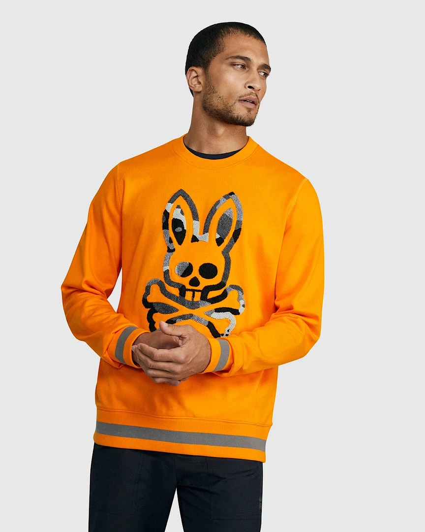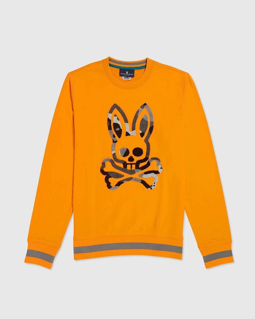 Our mens Howgate camo sweatshirt is designed to stand apart this fall. Crafted from only the softest cotton, the Howgate camo sweatshirt strikes the perfect balance between comfort and durability, with inner taped seams and reinforced flatlock stitching on the exterior. The Howgate is finished with a ribbed contrast hem and cuffs, which match the colors used for the camouflage Psycho Bunny logo appliquéd on the chest.