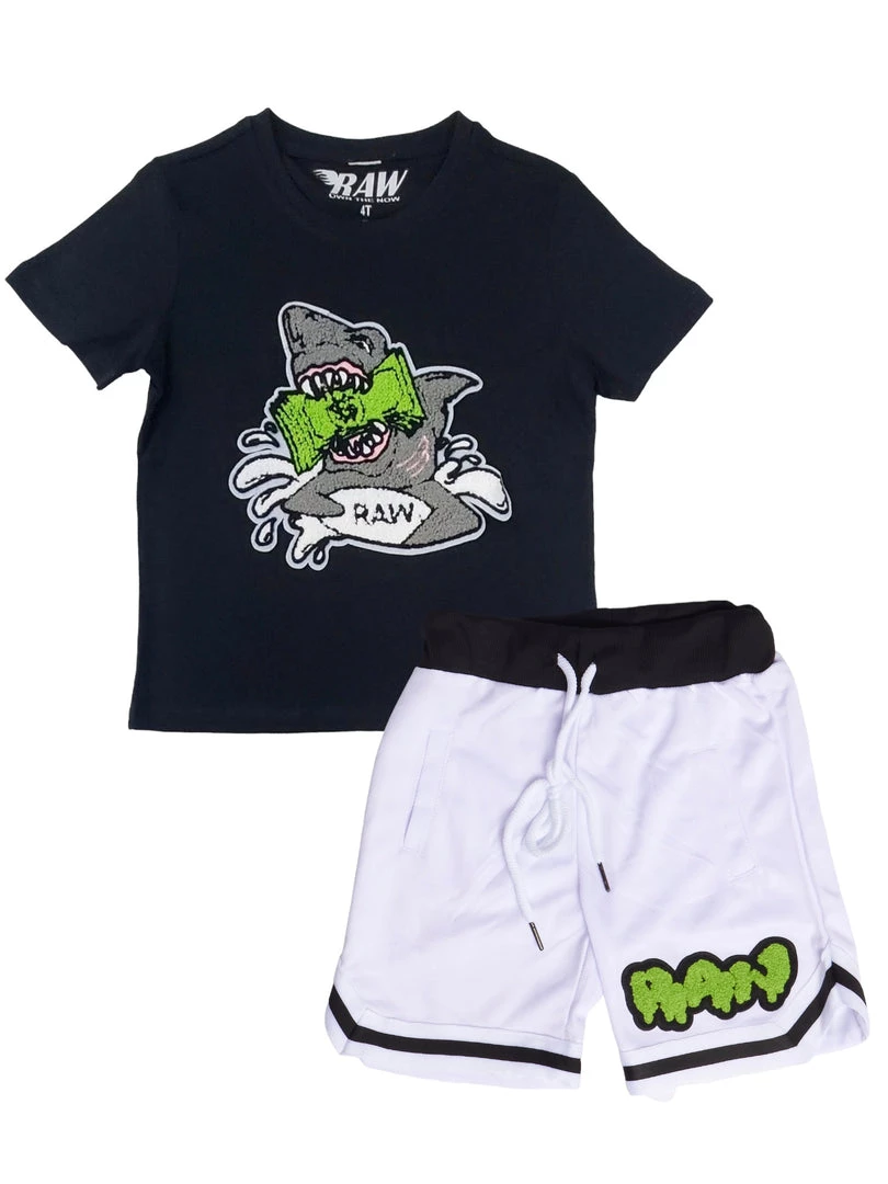 - Green RAW towards bottom of left leg
