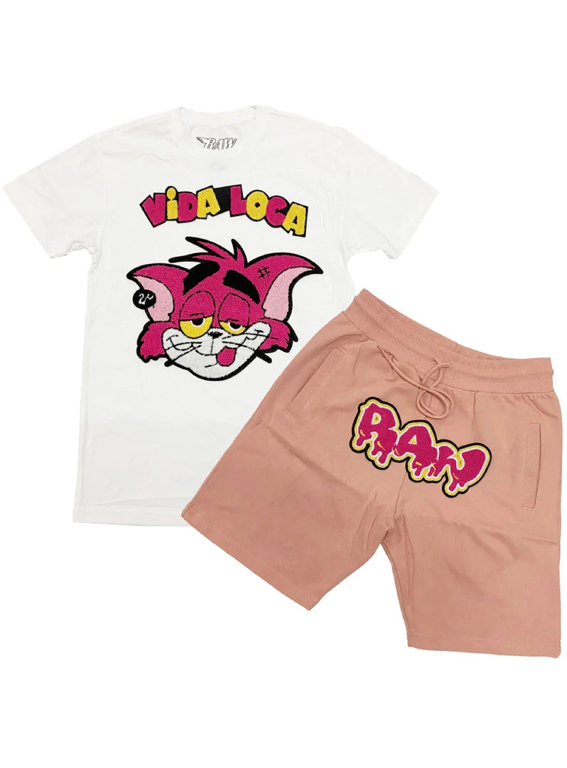 Rawyalty Short Set – Vida Loca – White And Pink With Peach