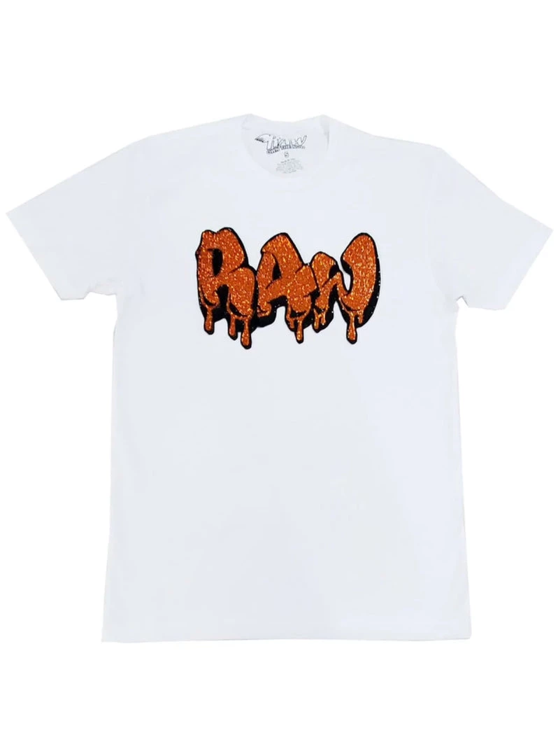 Rawyalty T-Shirt – RAW Drip Orange Bling – White – RMT-000 Shop All