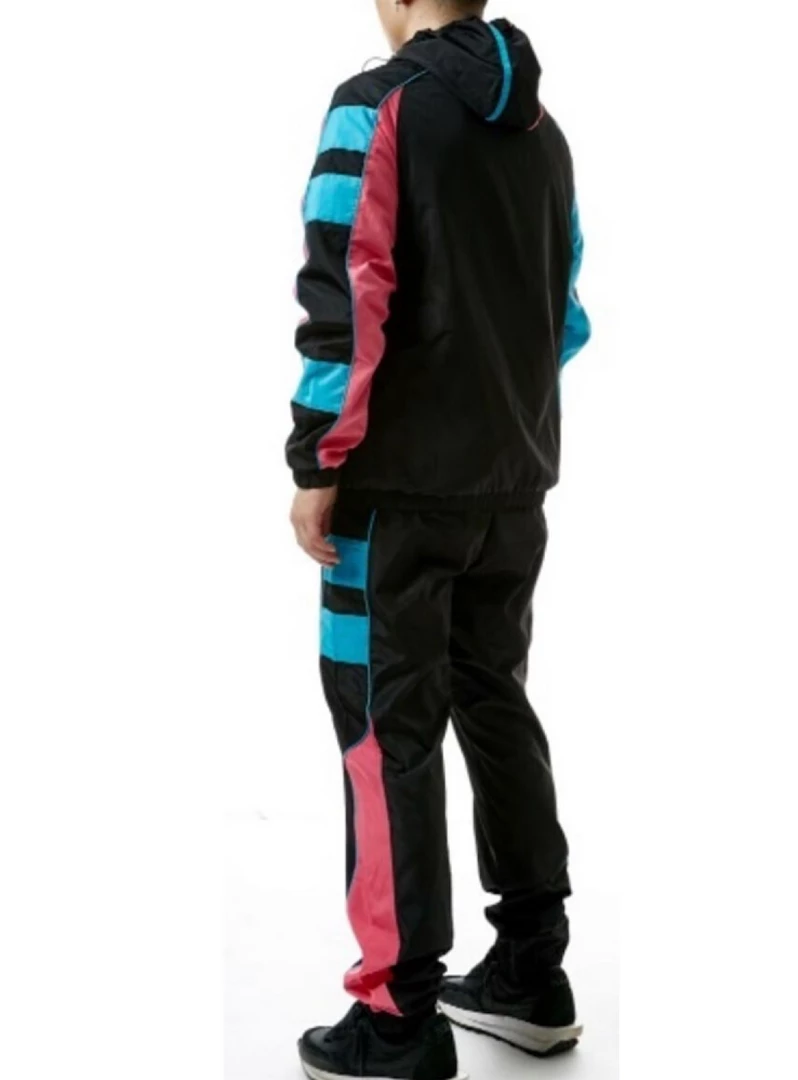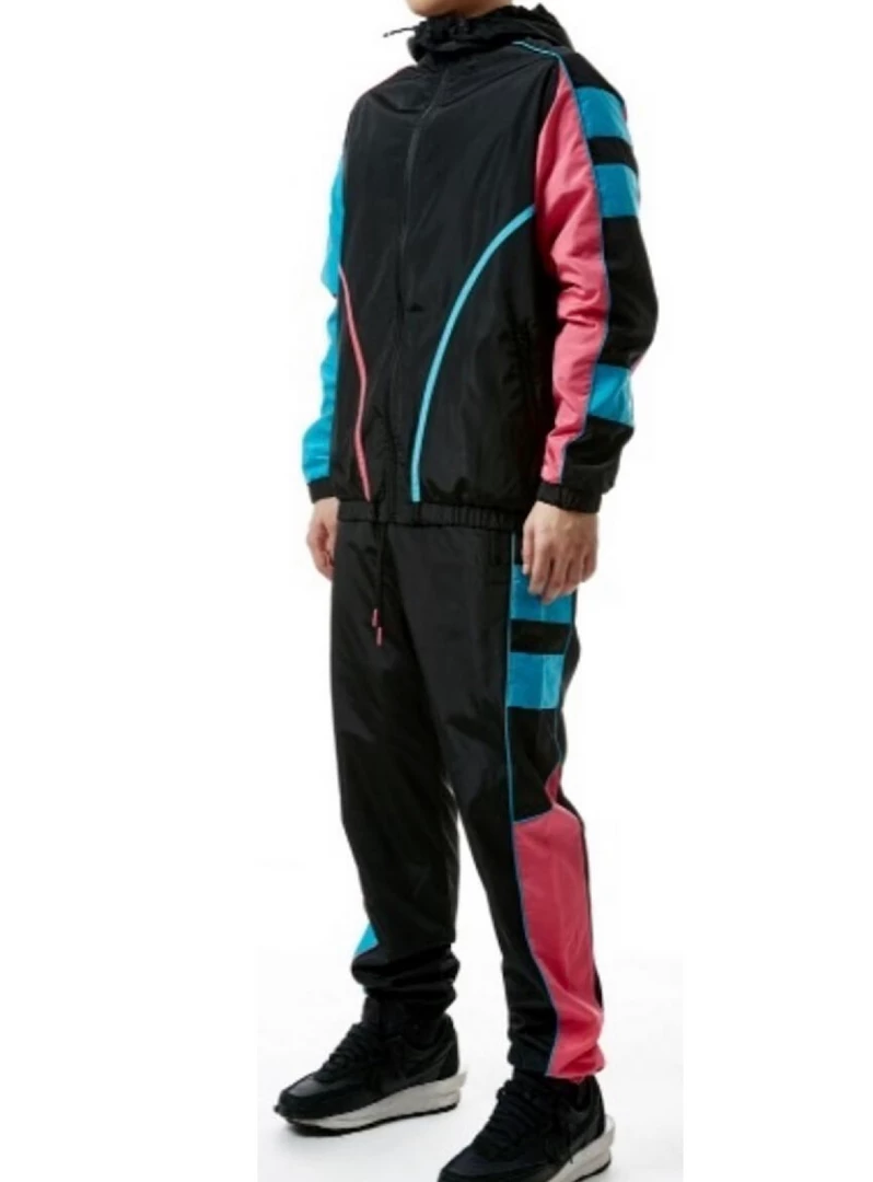 This Rebel Minds track suit is premium quality, it is made of nylon. It has a regular, true to size fit and was designed in the USA. Dry clean only.