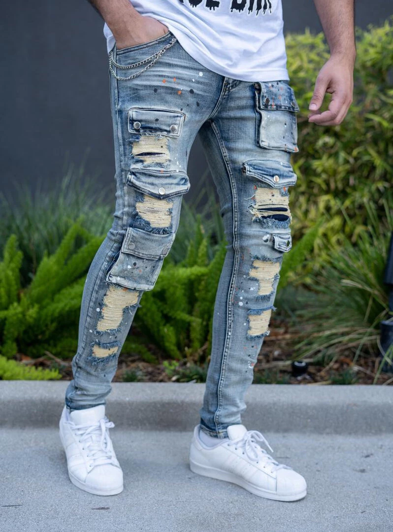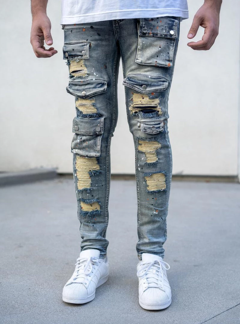 - Distressed denim