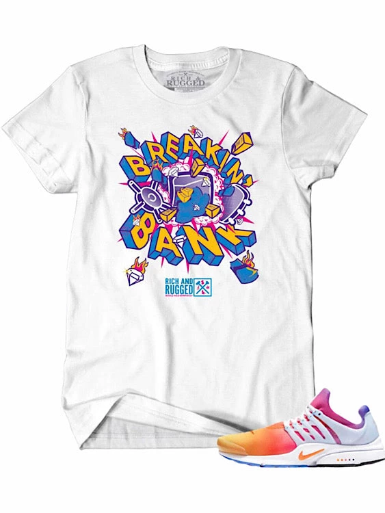 Rich & Rugged T-Shirt – Breakin’ Bank – White And Pink – RRBRB-WHI1